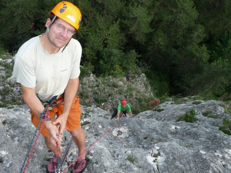 Einfachseil, 11 Expr. Schlingen, 2 Bandschlingen und Helm