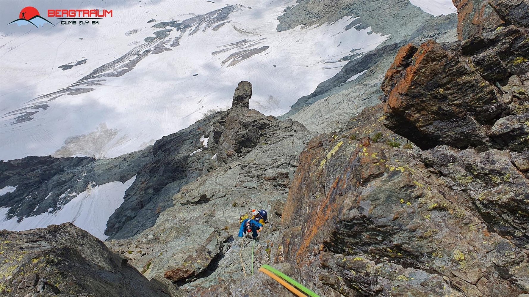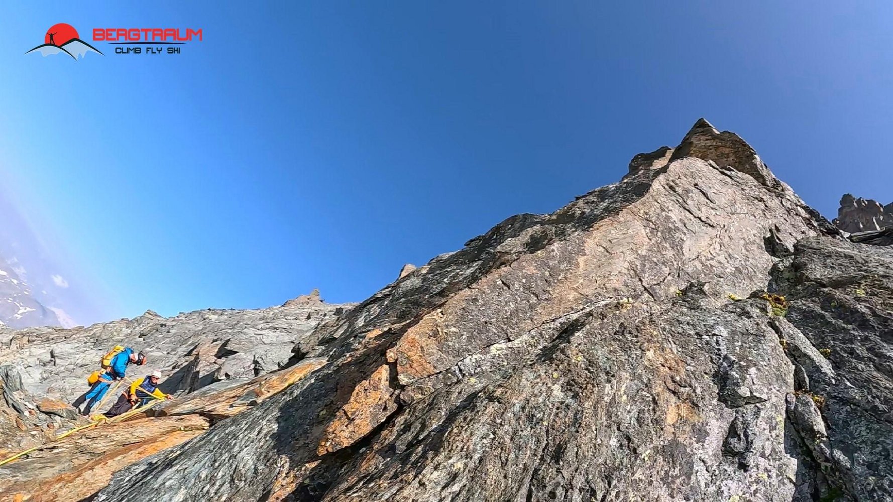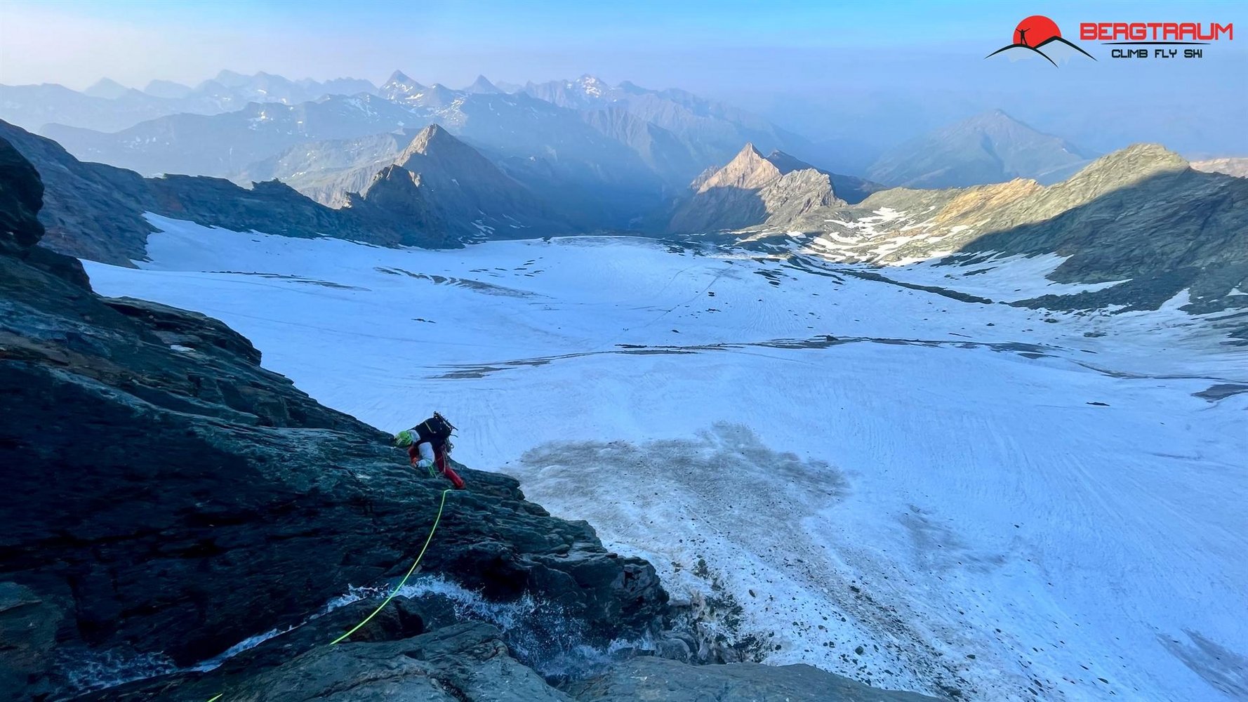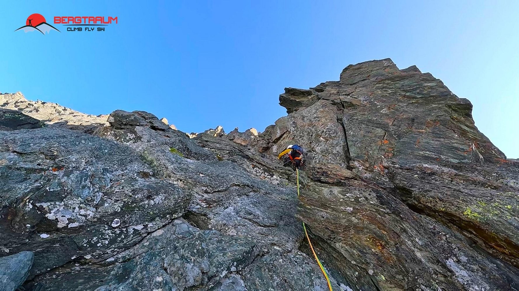 Herrlicher, einsamer Anstieg durch die Südwand des Glockners. Meist guter Fels, im unteren Teil oft brüchig. Dazwischen aber auch immer nicht zuverlässiges Gestein. Die Kletterschwierigkeiten schwanken zwischen III und V- nie schwerer. Einige Varianten im Mittelteil möglich bzw. notwendig. Es braucht eine kleine Spürnase zur Wegfindung.