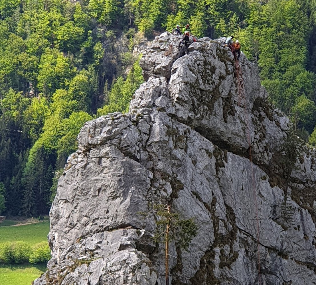 Vom Gipfel über die Ostwand 4x max. 20 Meter über Abseilpiste abseilen.