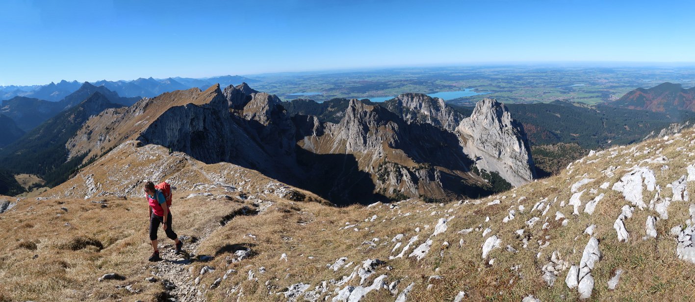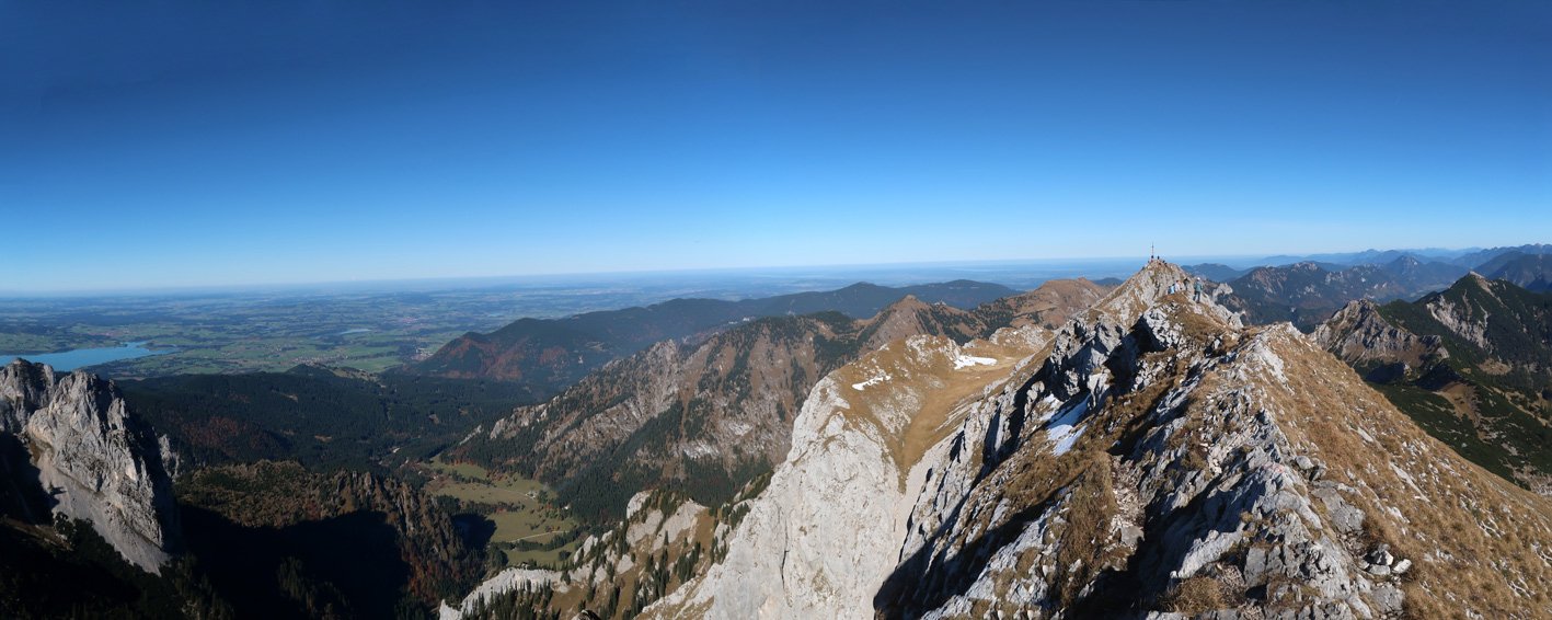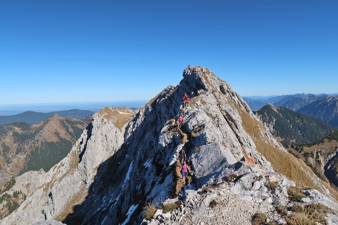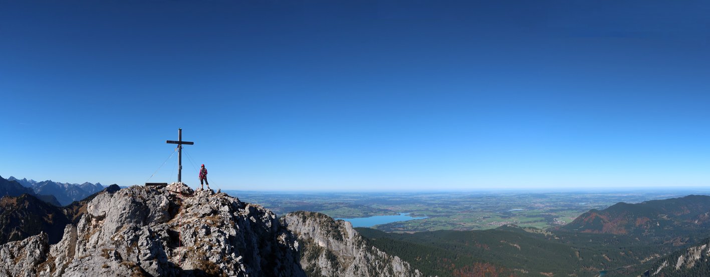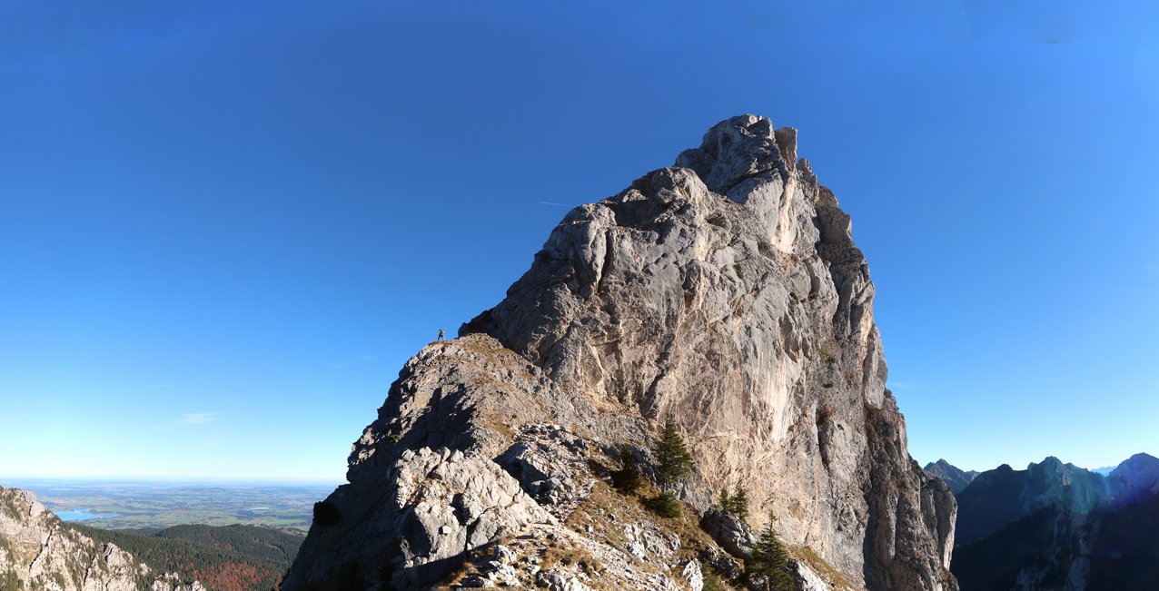 Die Südverschneidung ist der Kletterklassiker auf das "Matterhorn der Ammergauer Alpen"! Nach den ersten beiden Schrofenseillängen klettert man an doch recht schönem Fels immer ziemlich ausgesetzt und spektakulär hinauf. Die Schwierigkeit hält sich mit 5-/5 (die ersten beiden Bohrhaken am Beginn der eigentlichen Verschneidung) in Grenzen und am Ende kann man das perfekte Panorama ins nördliche Flachland genießen. Die Kletterei kann man ideal mit einer Biketour zum Zustiegsweg verbinden. Wer die Tagestour noch ausbauen will kann nach der Kletterei über das sog. Fensterl auf die Hochplatte steigen. Danach Überschreitet man den Berg und steigt vorbei an der Kenzenhütte wieder zum Bikedepot ab - so kommt man auf beinahe 1800 Hm.