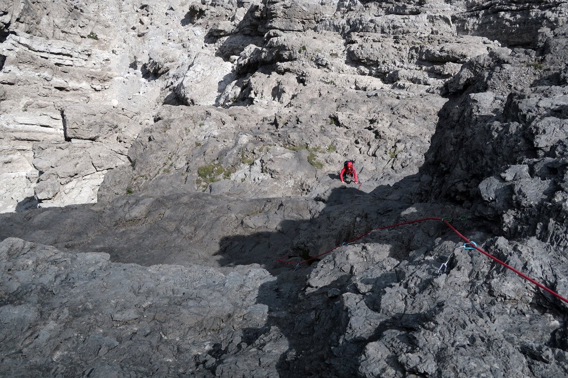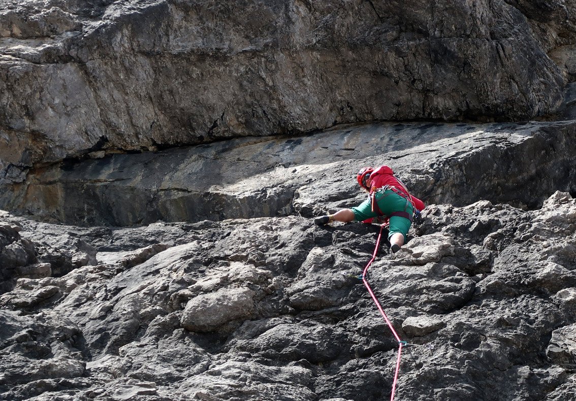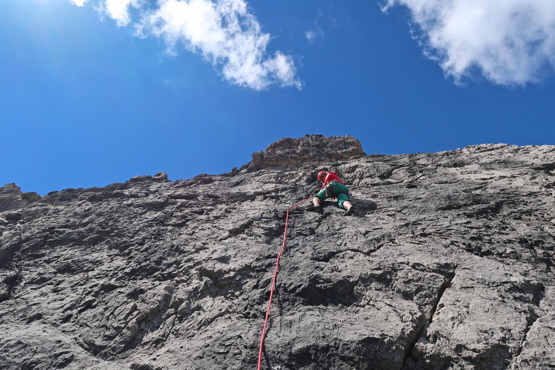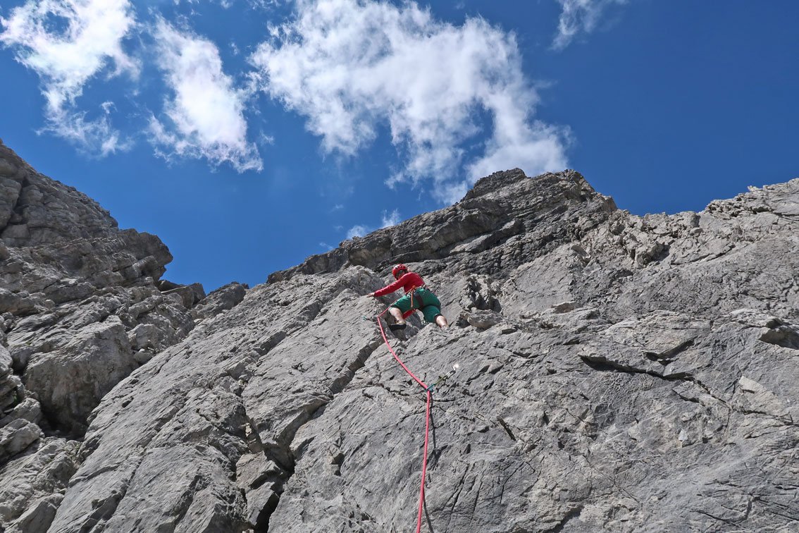 Eine der besten 5- Touren im Klettergebiet um die Steinseehütte - schöner Fels und sehr gute Absicherung machen diese Route zum Hotspot im Steinkar. Die Route wird auch gerne von Kursen besucht, lässt sich aber auch gut als "Draufgabe" nach einer Route am SW-Parzinnturm anhängen. Vor allem der Mittelteil bietet perfekte Kletterei an steilem, griffigem Fels - da kommt beim Höhersteigen richtig Freude auf.
