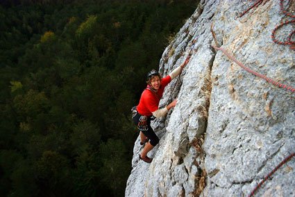 Tolle und gut abgesicherte Tour, die in der 2. SL ganz wunderbare Platten bietet. Die letzte SL ist nicht mehr ganz so schön. Hier kann man über den Gründbacher aussteigen.
