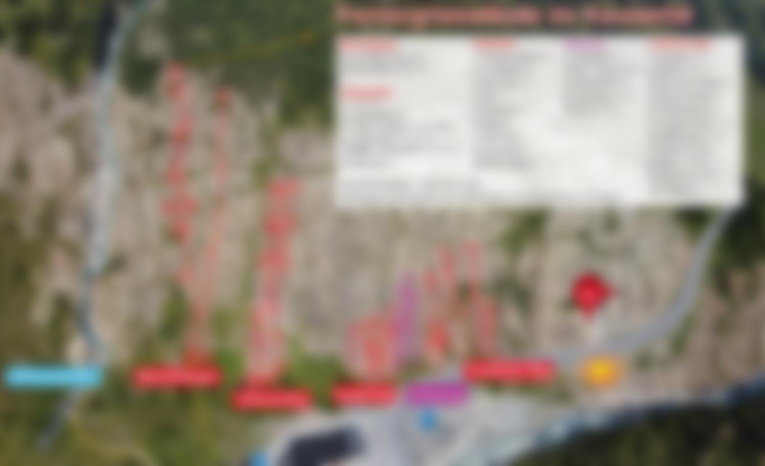 Vom Ende der Route auf Pfadspuren nach rechts zur Straße und auf dieser wieder zum Parkplatz beim Klettergarten Fernergries absteigen. Alternativ kann man auch über die Route abseilen (geht vermutlich auch mit 70 Einfachseil, am besten über die Route Into the wild - siehe Toposkizze).