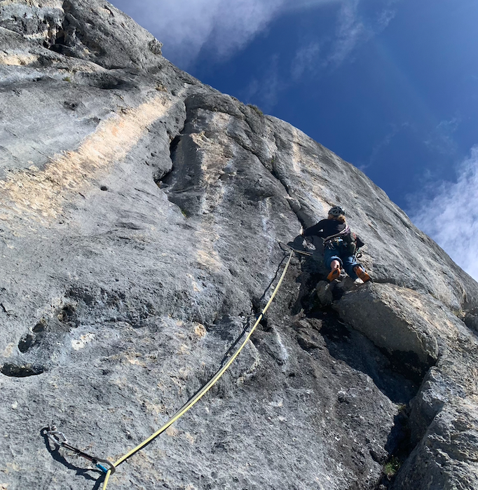 Die Route Sunny Side Up ist eine alpine Sportkletterroute mit überwiegendem Wasser zerfressenem Fels. Im unteren Teil befindet sich die Crux (ein steiler Riss). Im oberen Teil ist es homogener. Meist wird an gutem bis sehr gutem Fels geklettert, aber auch Schrofen und Grasbänder sind vorhanden.