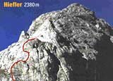 Über die Route Long is her abseilen oder weiter auf den Gipfel des Hieflers und von dort zu markiertem Steig, der vom Raucheck kommt, über Griesscharte zurück zum Einstieg oder von der Griesscharte über das Throntal zur Werfener Hütte (1- 1 ½ h) bzw. Ghf. Mahdegg.