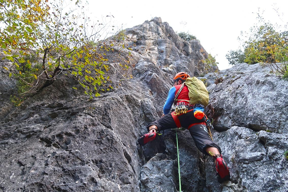 Die Route lässt sich gut mit anderen Touren an der Felswand kombinieren - die erste Seillänge eignet sich auch gut als leichter "Kain und Abel-Einstieg".