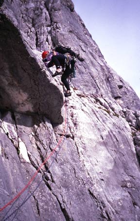 Eine der schönsten Klassiker am Festkogel, aber etwas alpin. Dieser Festkogelplattenanstieg wurde von Klaus Hoi mit Gef. erstbegangen und ist jetzt sanft saniert worden. Trotzdem sollte der Umgang mit Stoppern und Friends sehr gut beherrscht werden, der obere 6te Grad sollte auch sicher sitzen.