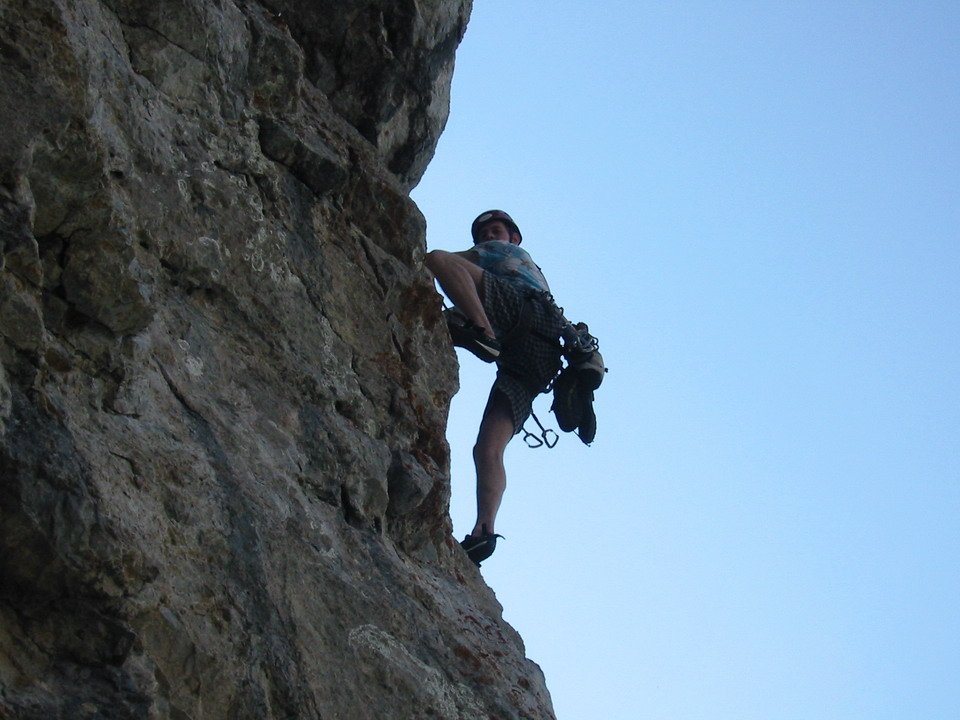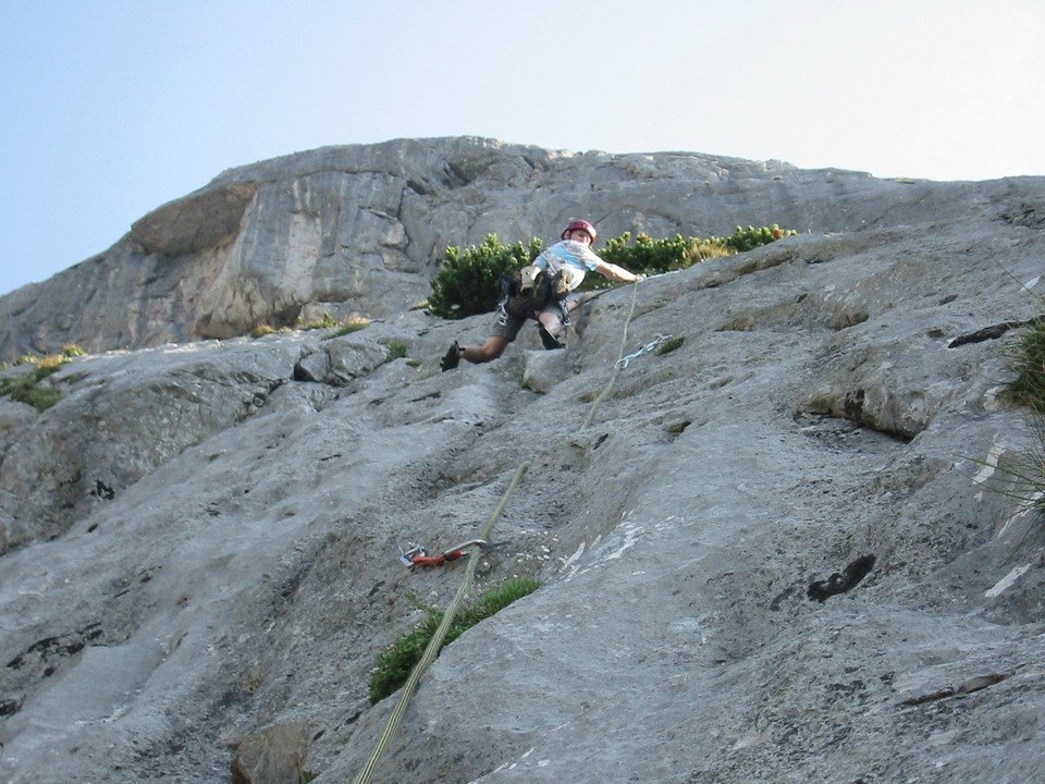 Interessante und abwechslungsreiche Tour auf der Wetzsteinplatte. Im unteren Bereich sehr schöne Plattenkletterei, unterbrochen von von einer Schrofenpassage. Im oberen Teil steile Wandkletterei in kompakten, rauhen Fels mit einem ausgesetzten Quergang. Die Supermaus stellt eine weitere sehr schöne Alternative zur klassischen und oft überlaufenen Wetzsteinplatte dar. Ganz oben gibt es noch links die Ausstiegsvariante "Astromaus" 7-/A0.
