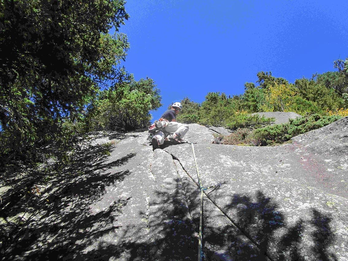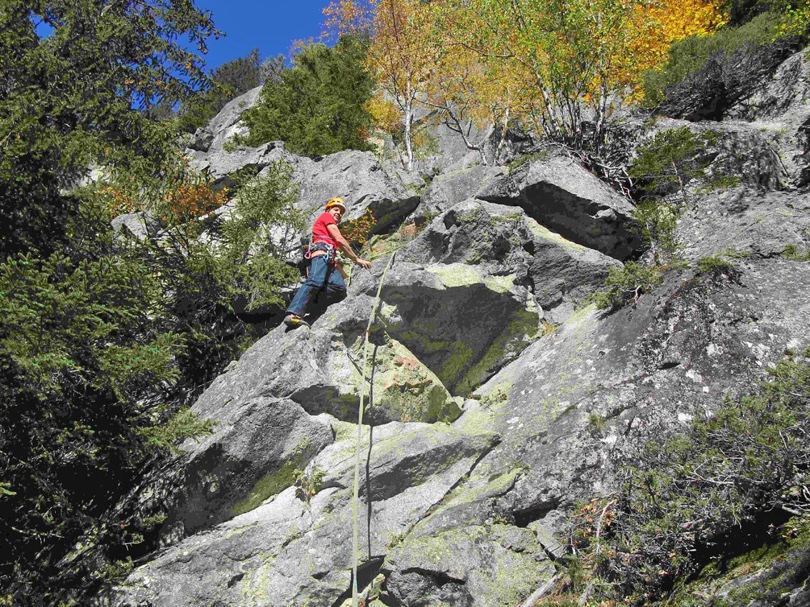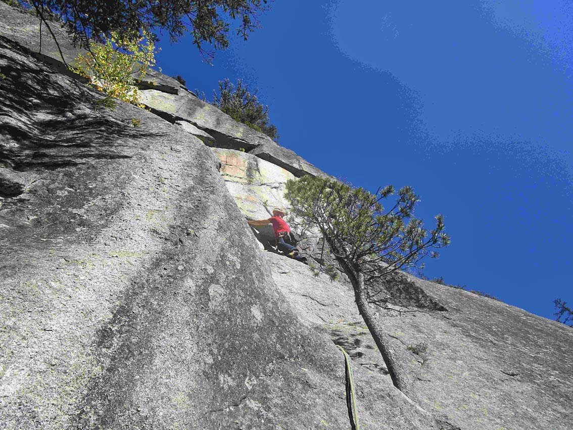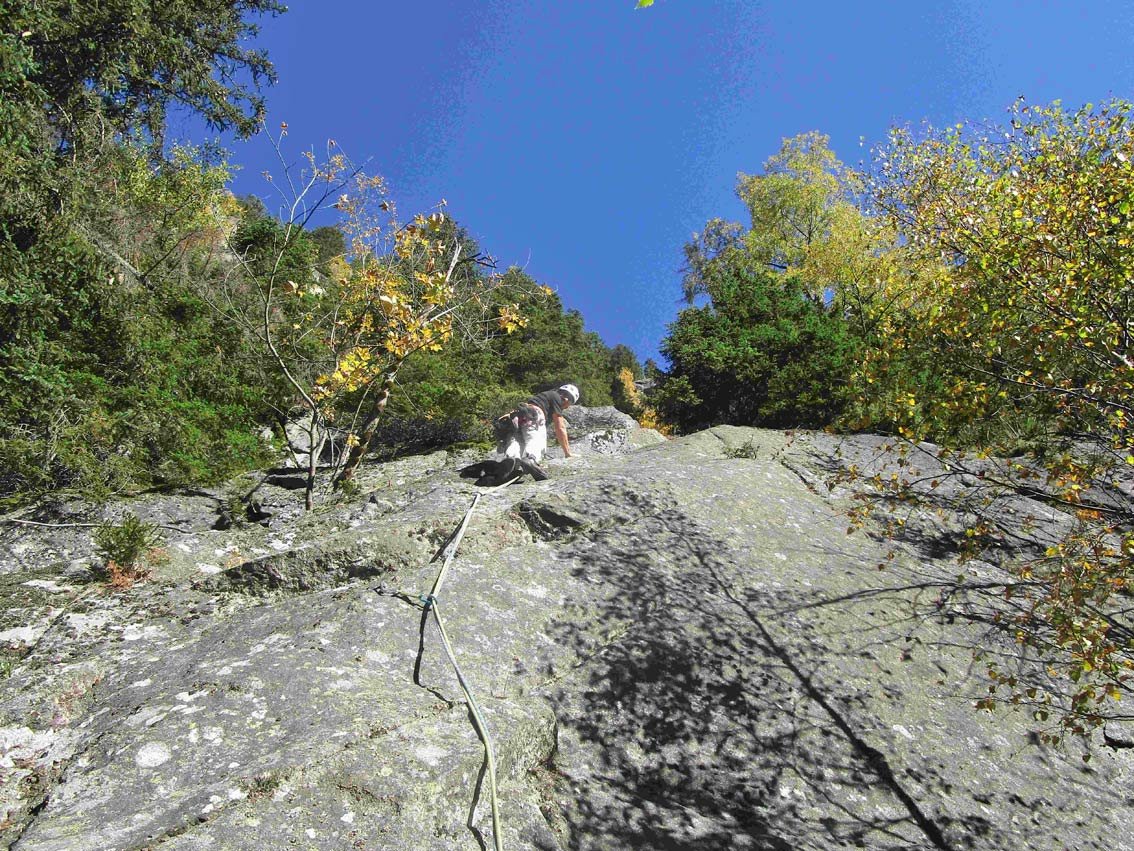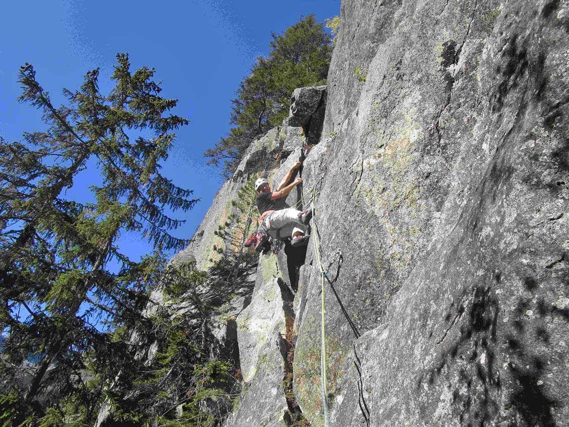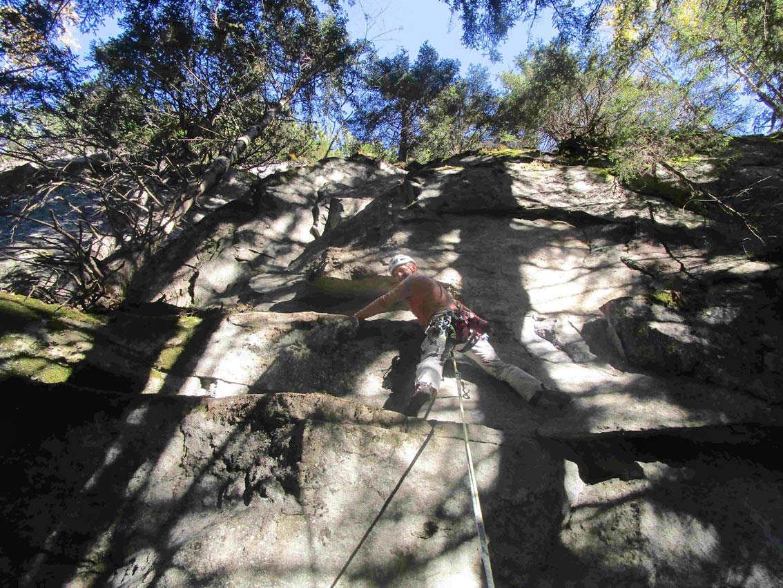 Zwei Seillängen 7-, oft um 6 und 6+, nur unten etwas leichter.