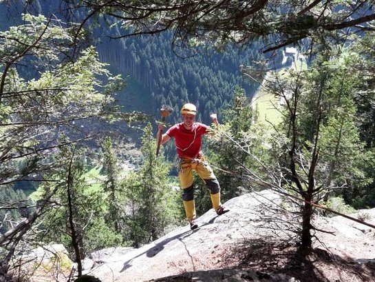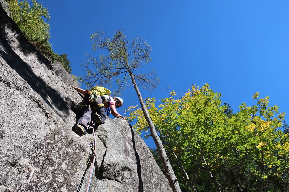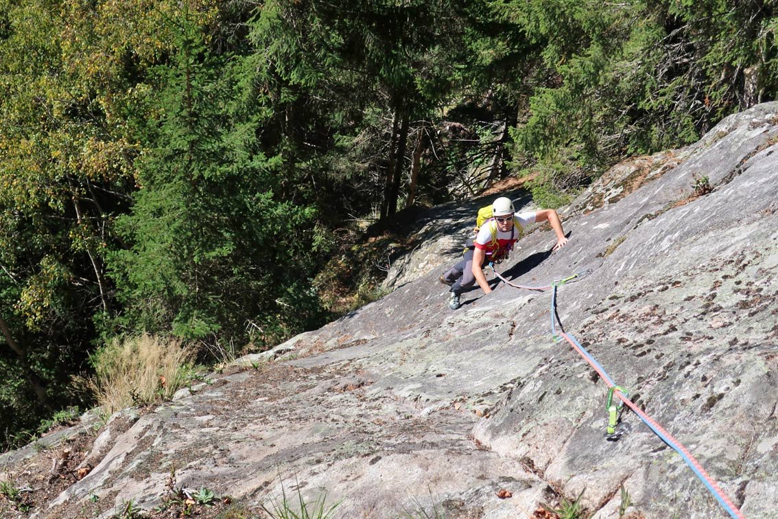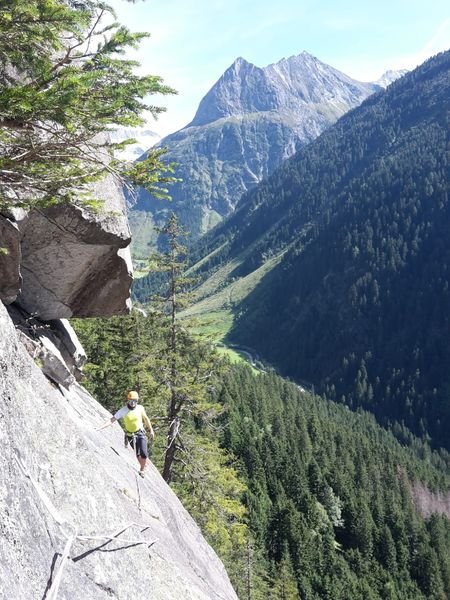 Supersommer ist eine Klettertour, die alles bietet, was ein Granit-Kletterer können muss, aber in abgeschwächter und sehr gut aufbereiteter Form. Platten, Stufen, Kanten, Verschneidungen (darunter auch eine fi ese), kleine Überhänge und Faustrisse müssen bewältigt werden und alles ist mit Bohrhaken sehr gut abgesichert. Ganz nebenbei hat man eine fantastische Aussicht auf die immer kleiner werdende Gletscherwelt der 3000er des Zillertals.