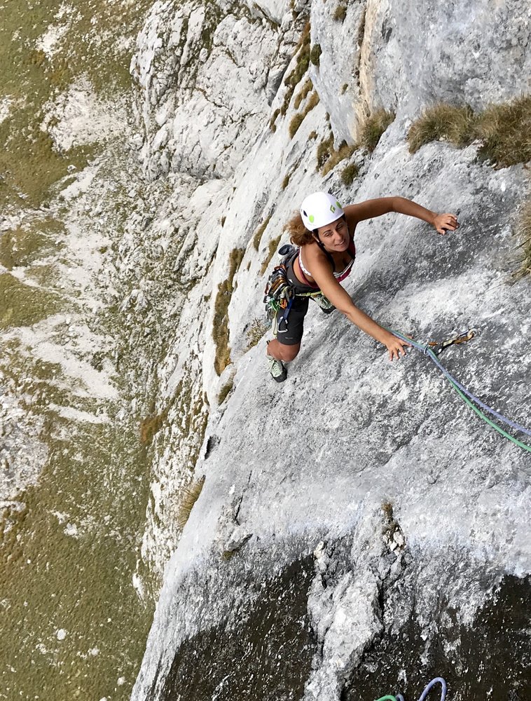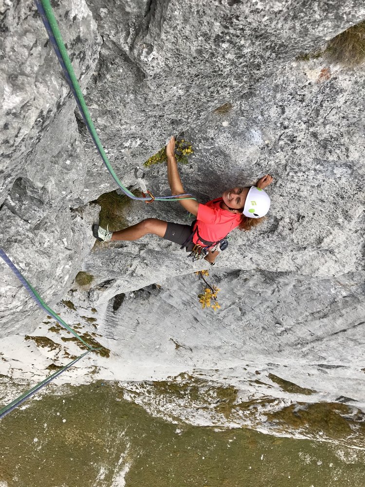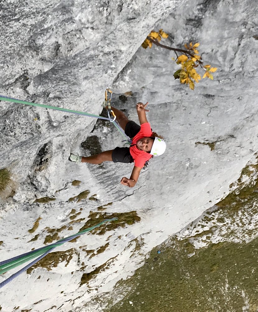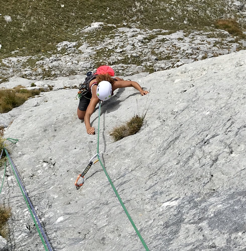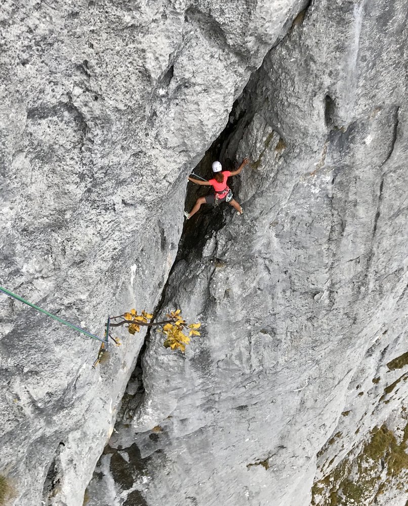 Kurze alpine Sportklettertour (insgesamt 4 Touren nebeneinander mit bis zu 5 SL) mit teilweise längeren Hakenabständen