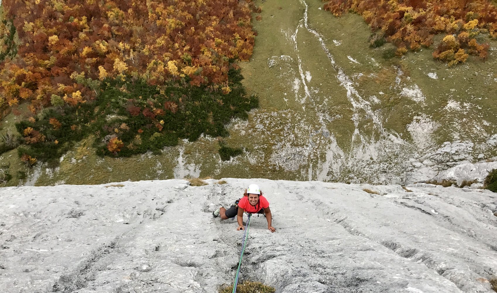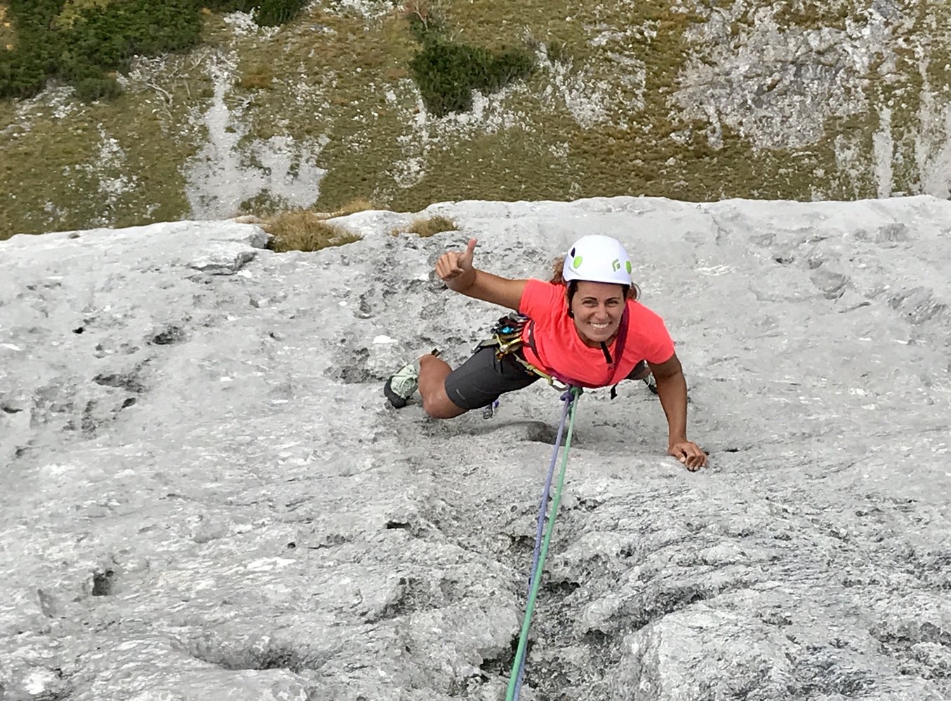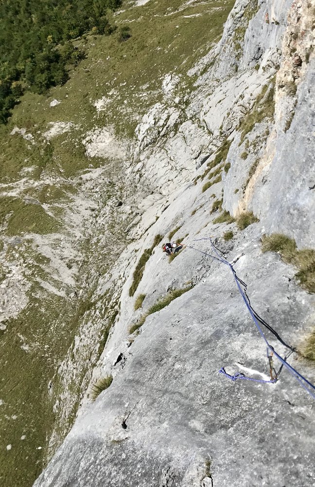 1 SL:46 m bis ca. VII. Super (relativ steile) Plattenkletterei.
