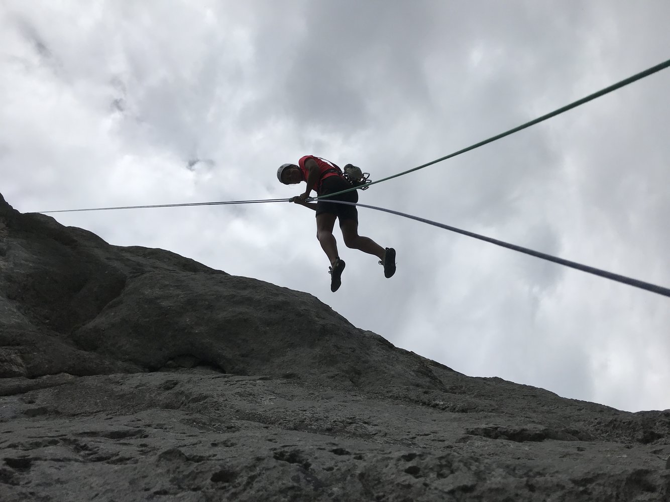 4 SL: 40 m mit einer Ao Stelle am Anfang, sonst bis ca. VI in bestem wasserzerfressenem Fels!!
