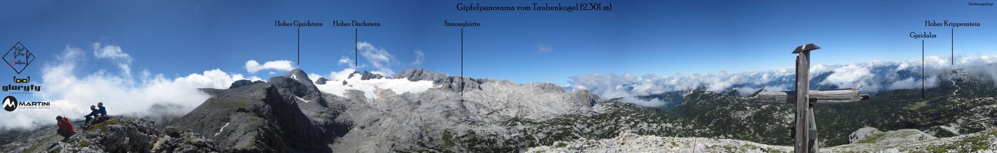 Auf dem markierten Weg, vom Gipfel Anfangs in südlicher Richtung zurück zu den Rucksäcken am Einstieg und weiter zur Gjaid Alm / Station der Krippensteinbahn. Man kann auch vom Pfeilerkopf ober die Route Ostwand abseilen.