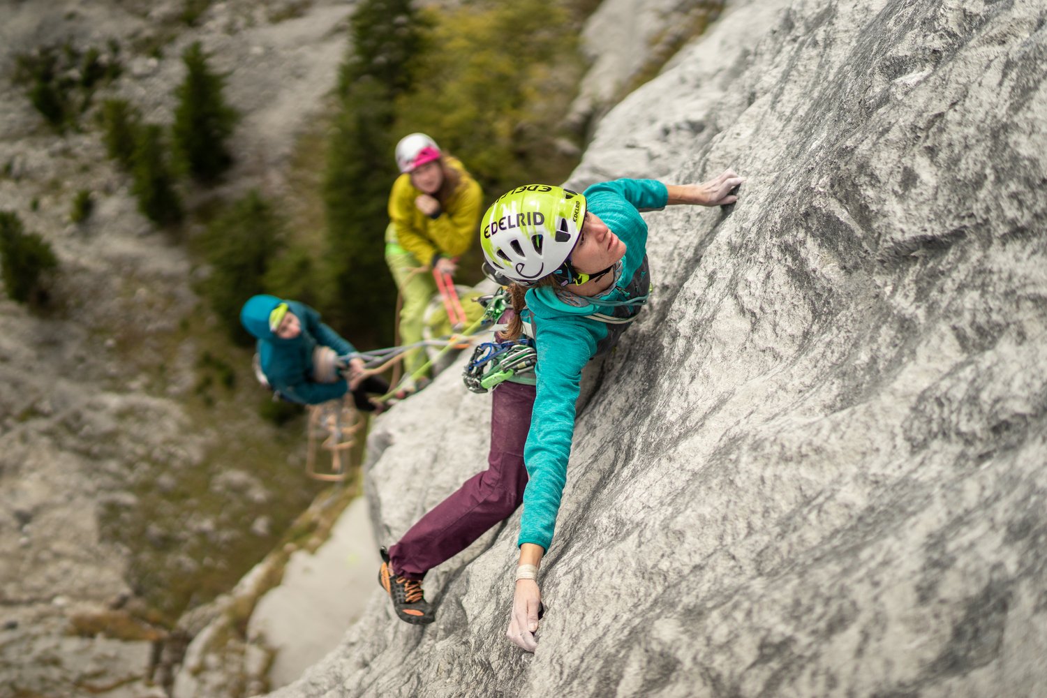8 Expressschlingen, davon 2 verlängerbare, Helm, eine extra 120er Schlinge für den Ausstieg