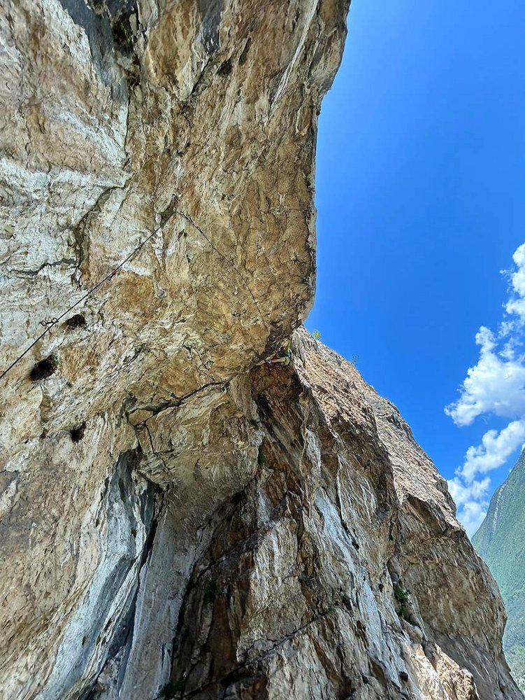 Variante 2: Die ersten beiden Längen der Primi Sogni klettern, da kommt man genau zum Stand unter dem Dach - wir fanden das die lohnendste Variante.