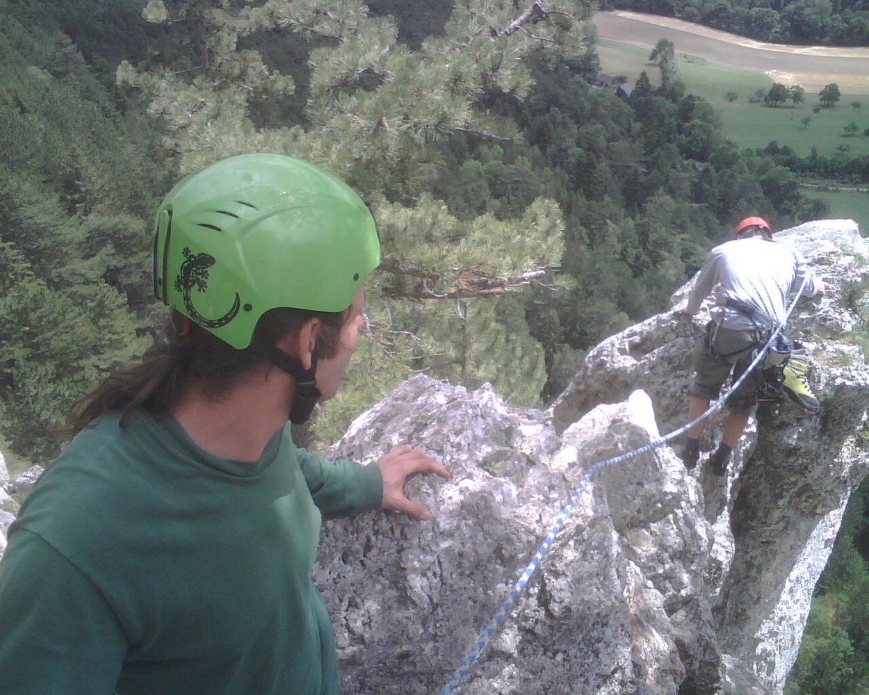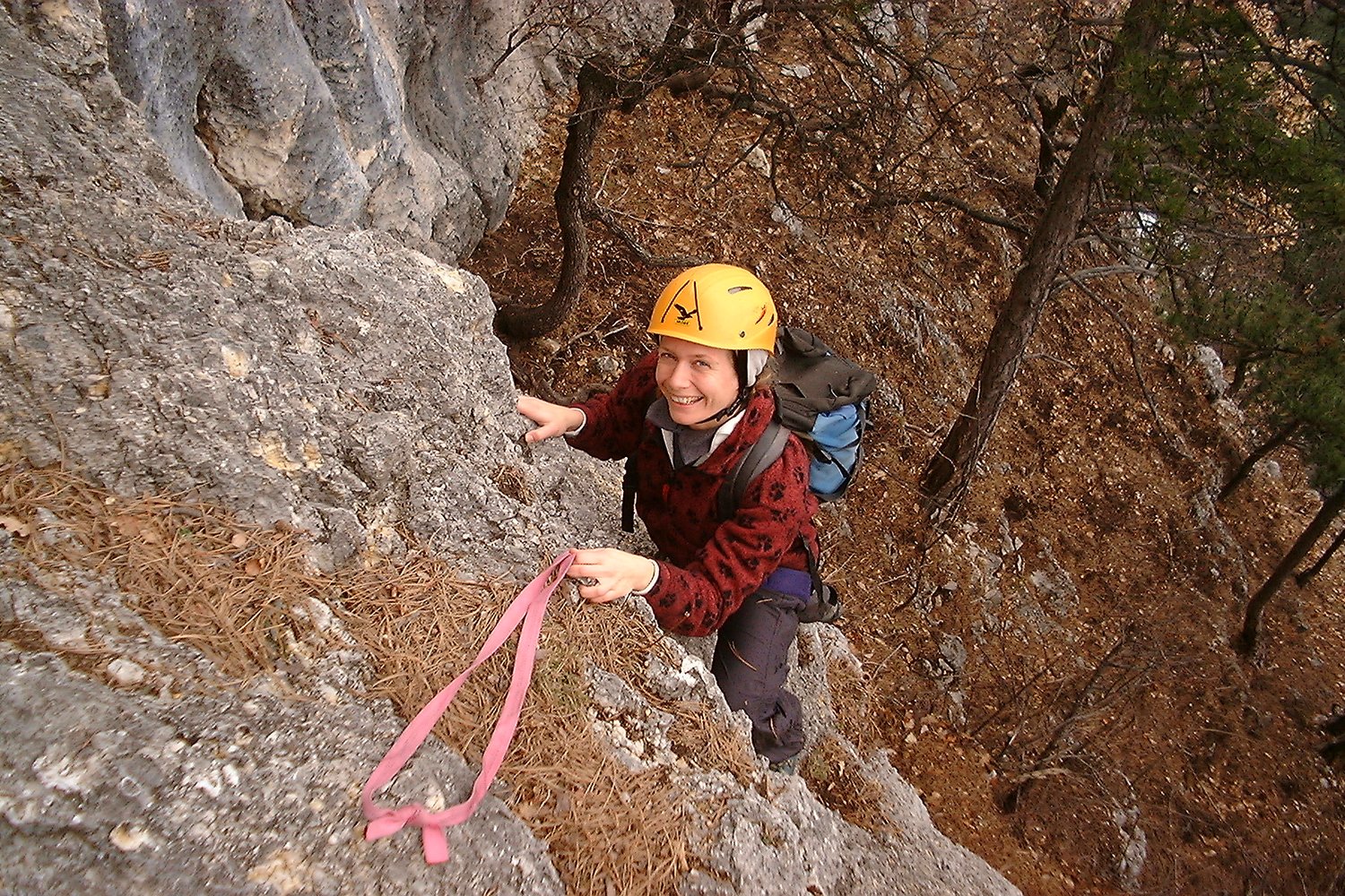 In den letzten zwei Seillängen sind auch noch die Folgen eines großen Windwurfes zu sehen bzw. zu umgehen.