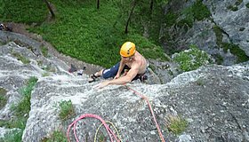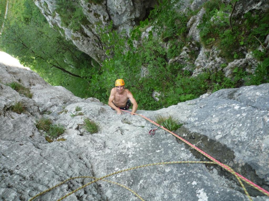 Tolle Tour im linken Teil der Gaisbauerwand. Harte erste Seillänge und großartiger Fels in der letzten Länge. Tolle, sehr empfehlenswerte Tour für heiße Tage!