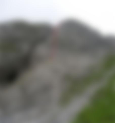 Zur Abseilpiste: Vom Gipfel wenige Meter schräg in östliche Richtung bis zum Wandabbruch absteigen (Steinmann), hier 1. Abseilhaken (vom Steinmann gut sichtbar).