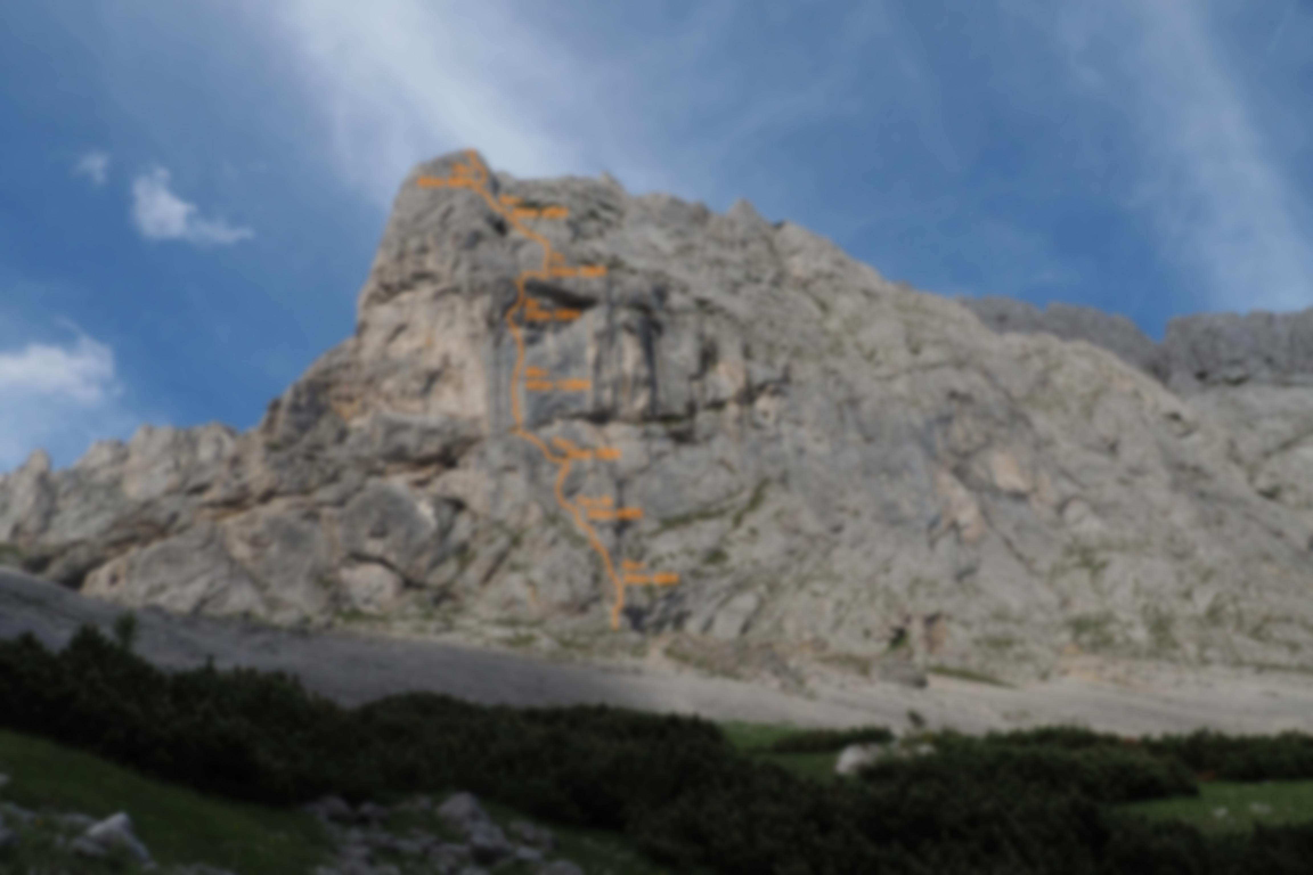 Erstbegehung: 2011- Sommer 2012 mit Stefan Lieb: von unten ohne vorheriges Erkunden