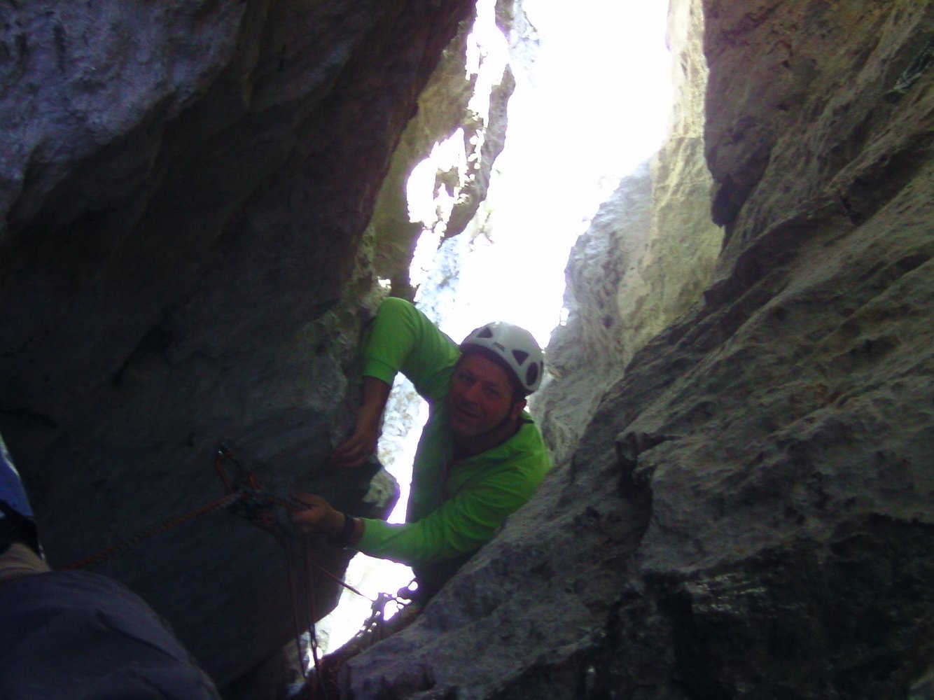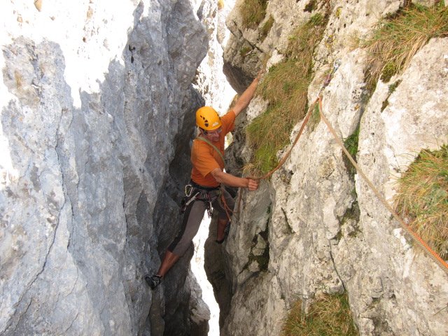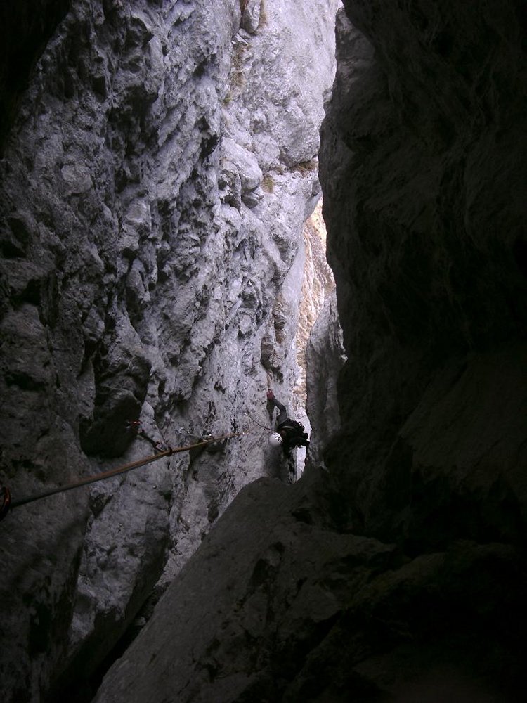 In dieser außergewöhnlichen, fast originellen Route klettert man ca. 50 Meter im Berg. Obwohl Kamin-Klettern eine heikle Angelegenheit ist, wird es dank der guten Bohrhakenabsicherung in diesem langen Kamin fast zum Klettergenuss. Die äußerst luftige Abseilfahrt am Ende der Tour rundet diesen perfekten Abenteuer-Klettertag ab.
