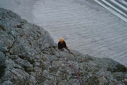 Aufgrund des vielen losen Gesteins ist das Abseiilen nicht zu empfehlen.