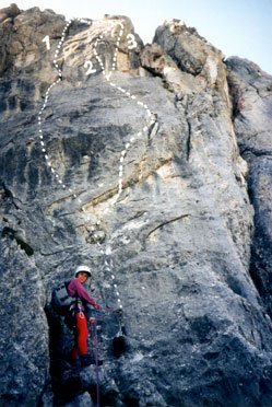 "Auf der Nordkette gibt es ja nur Schrofen" - so lautet die gängige Meinung. Erst wenn man direkt davor steht, findet man das Gegenteil: eine schöne, südseitige Tour in grandioser Umgebung mit überraschend gutem Fels: "trip to reality" an der Westlichen Sattelspitze (2300m). Geboten wird überwiegend senkrechte Wandkletterei. Hinweis: Der Nachsteiger soll im Mittelteil der 2. Seillägen genau den Bohrhaken folgen, da sich diese aus dem leichten Gelände rechts der Tour nich mehr aushängen lassen.