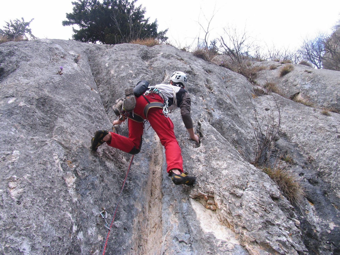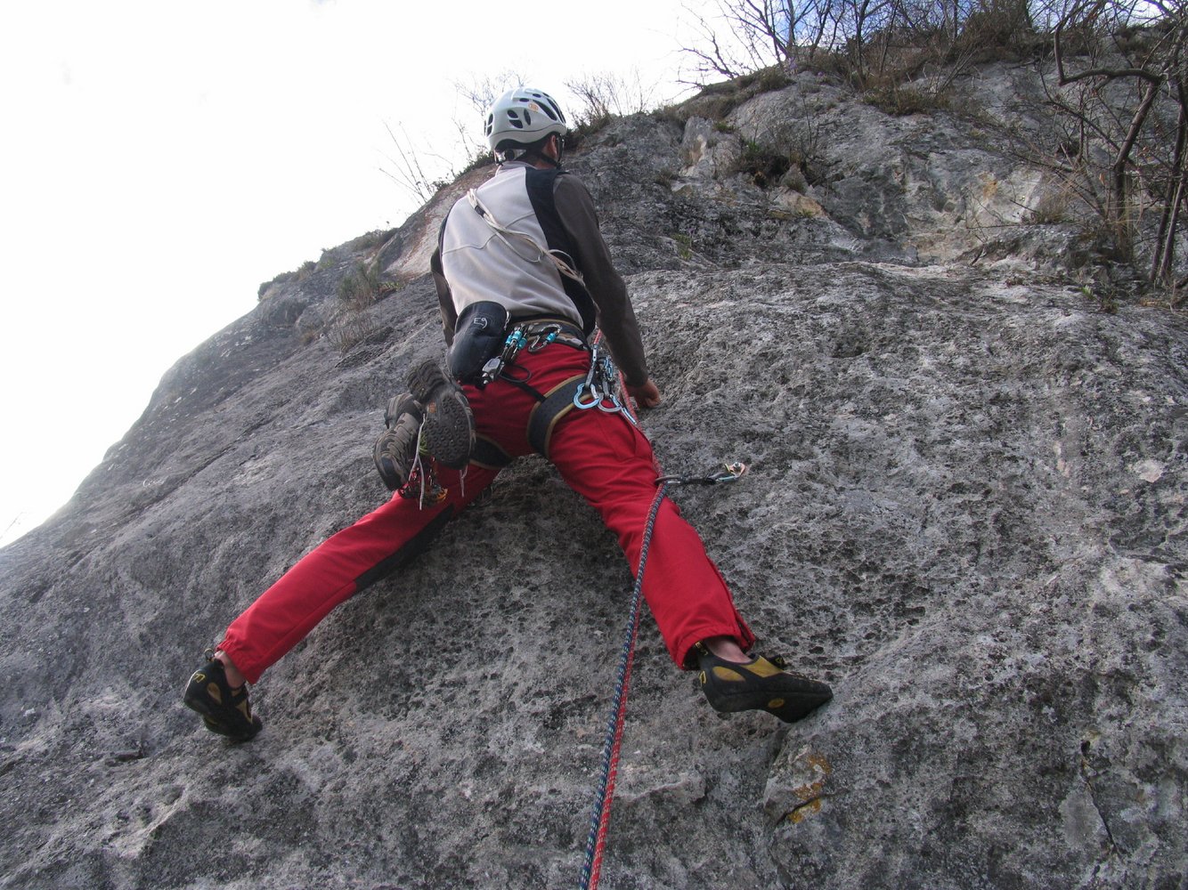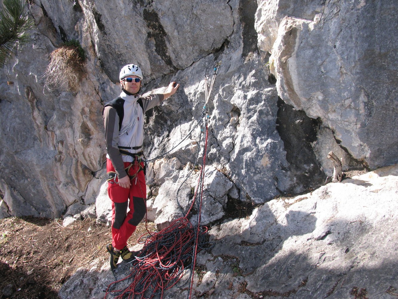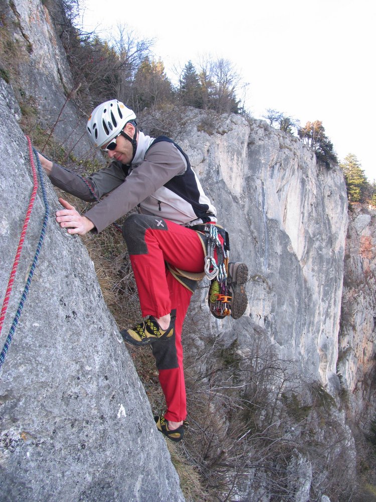 In der 5ten SL Runouts welche beim Sturz im brüchigen Terrain zu einem Groundfall führen würde. Hier kann jedoch zusätzlich mit Keilen gut gesichert werden.