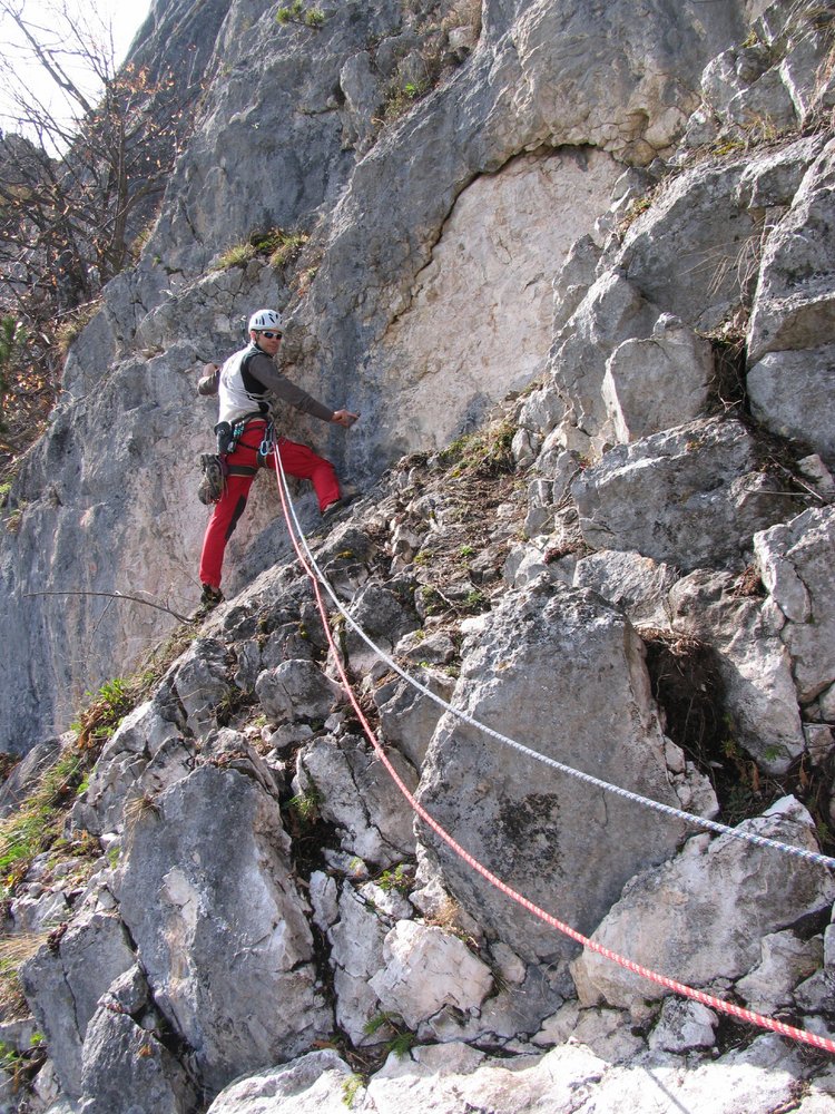 Neue Tour im rechten Teil der Totenköpflwand, welche auch über Schrofenpassagen führt. Diese Route wurde mit enormen Putzaufwand realisiert und führt zum Teil auch durch brüchige Wandpassagen. Durch die generelle inhomogenität des Gesteins in diesen Sektor wird der Charakter der Route erhalten bleiben.