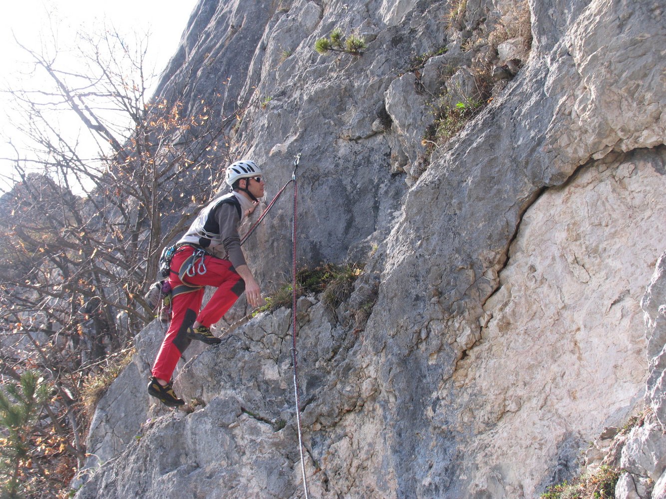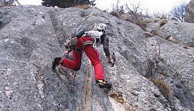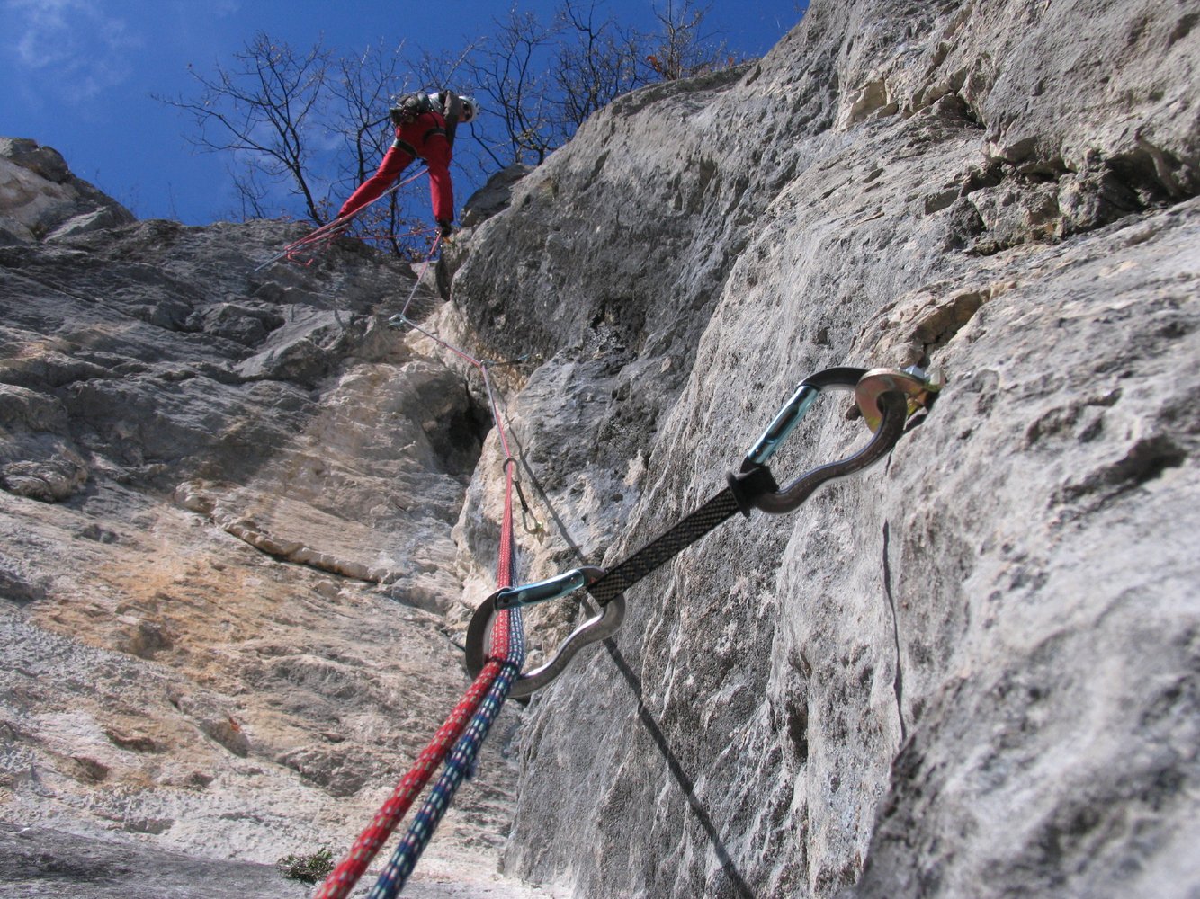 Absicherung gut durch Schwerlastanker jedoch sind die Schlüsselstellen zwingend frei zu klettern. (sicherer Vorstieg 7- obligatorisch)