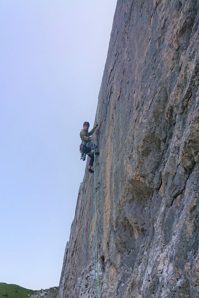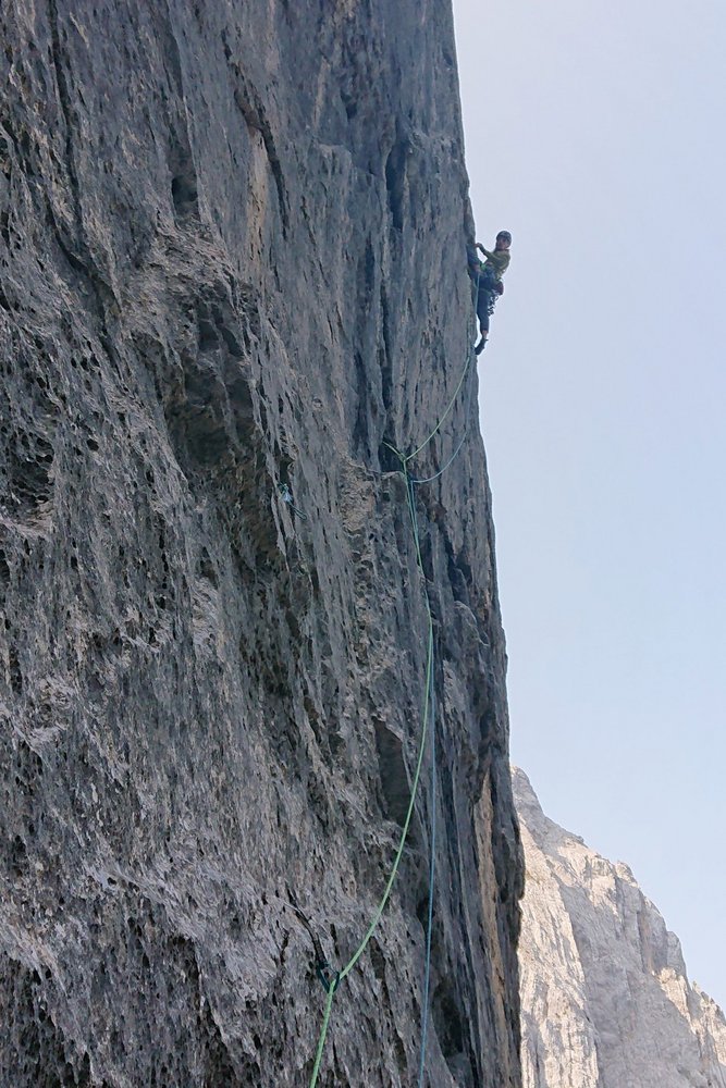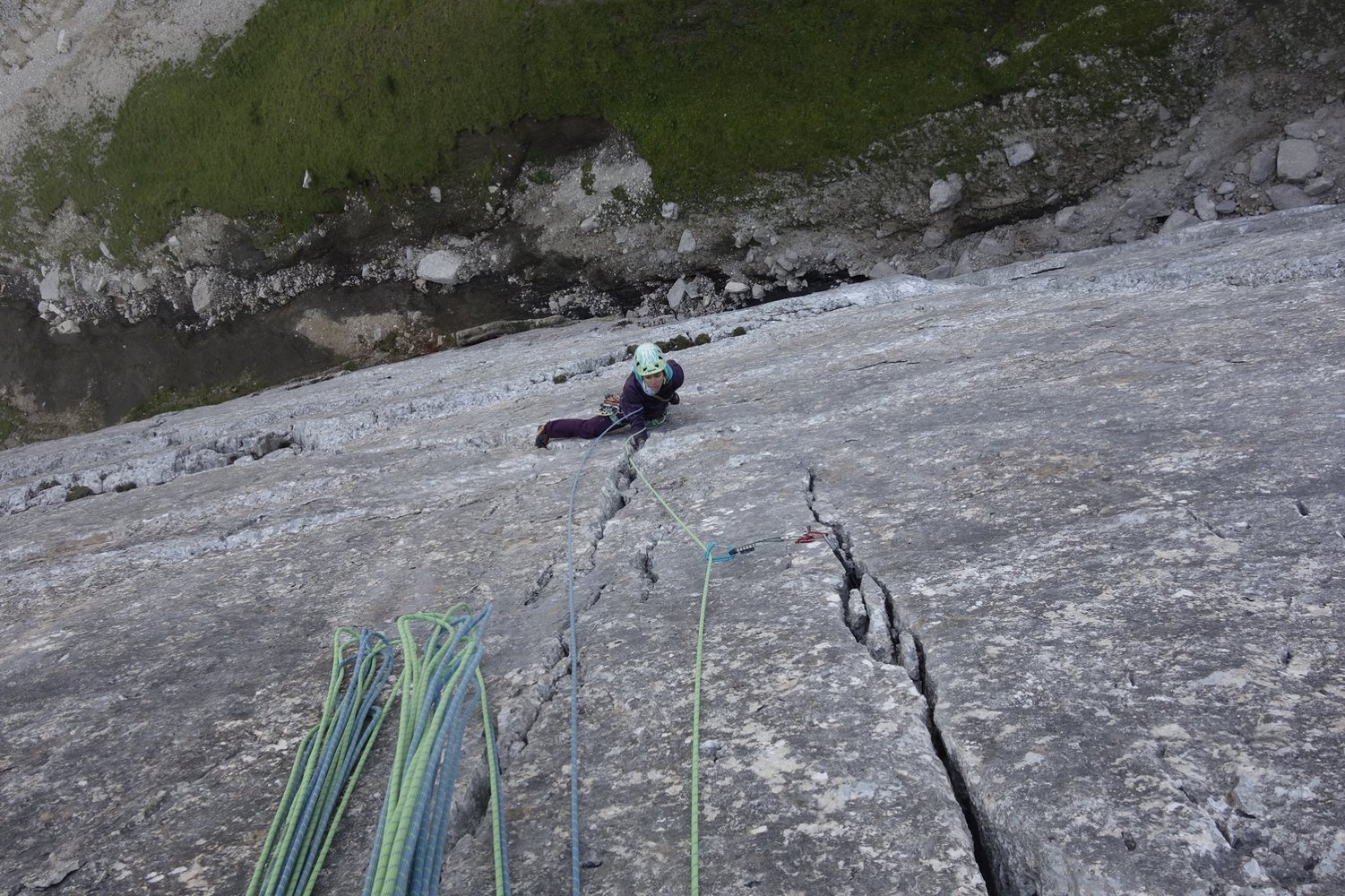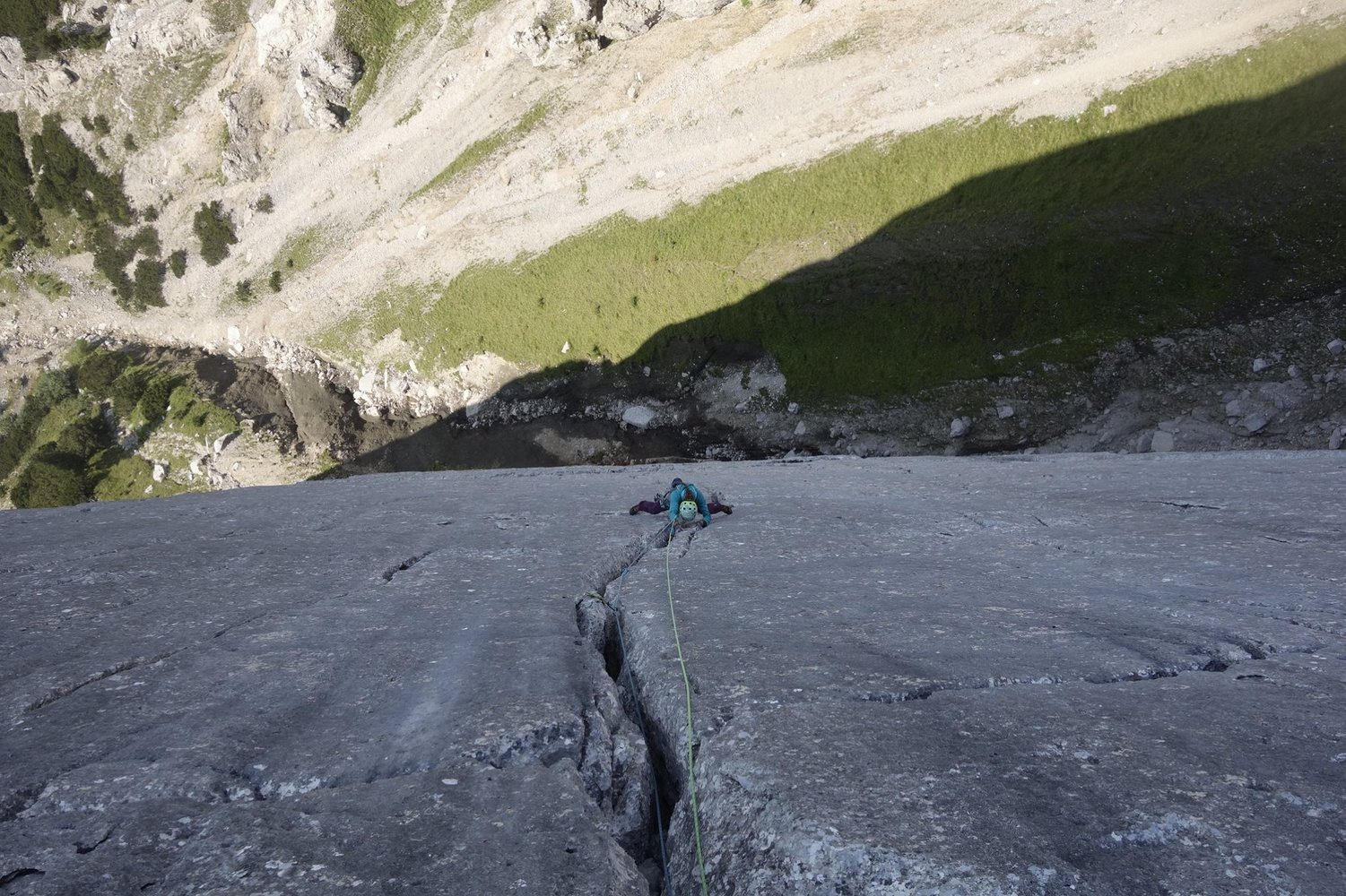 Eine der lohnendsten und begehrtesten Rissklettereien in den Ostalpen. 150 mehr oder weniger cleane Meter bis 8- im Halleranger. Jeder kennt sie, jeder hat sie schon mal gemacht, und noch viel wichtiger, jeder hat's gefeiert:-)