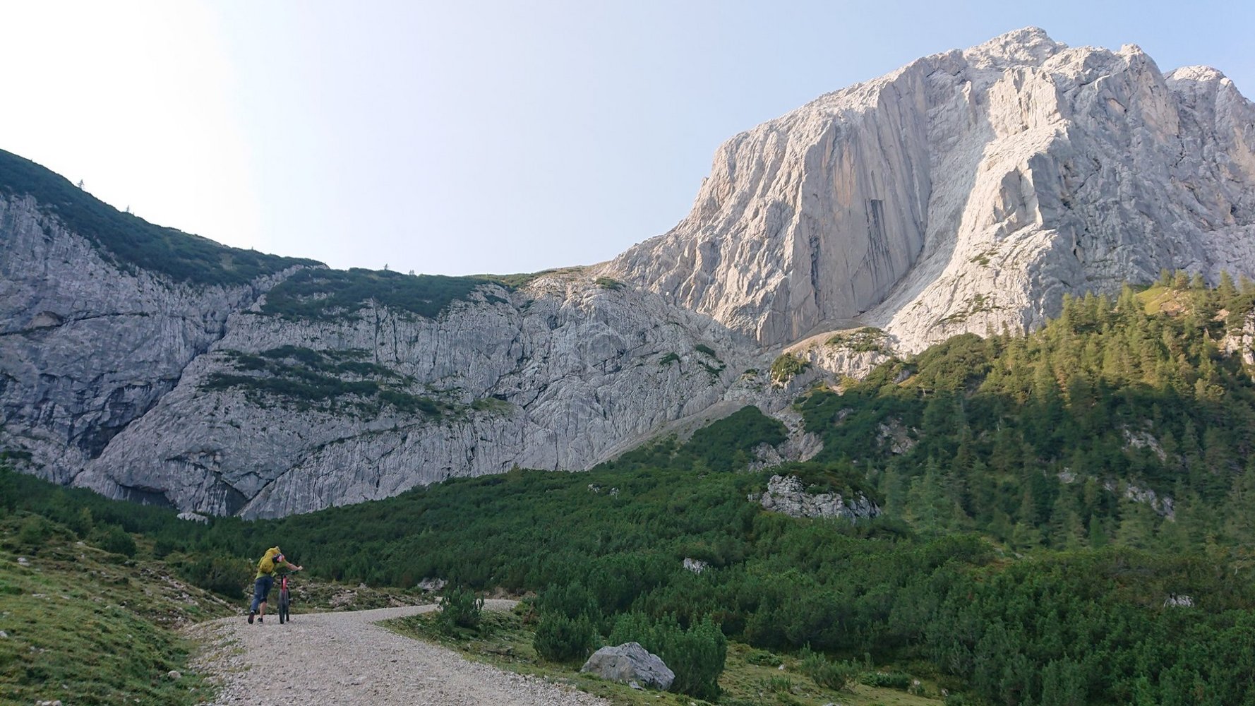 Vom Parkplatz Schraffelbrücke in Scharnitz mit dem Mountainbike ins Hinterautal, vorbei an der Kastenalm zum Hallerangerhaus. Von dort zu Fuß auf dem Normalweg zur Speckkarspitze bis zu den Schnittelwänden.