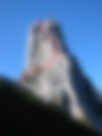 Die erste Seillänge quert hauptsächlich nach rechts. Danach über die Platte zur Kante. Weiter durch die Verschneidung/Rinne, dann rechtshaltend zum Gipfel. (Variante links zur Kante möglich)