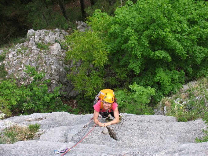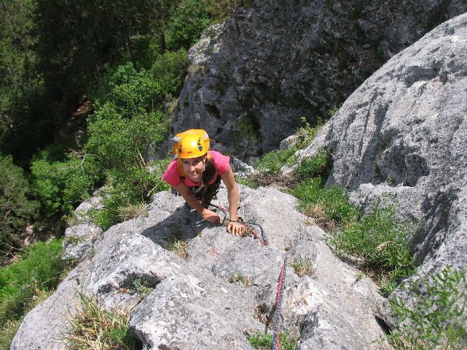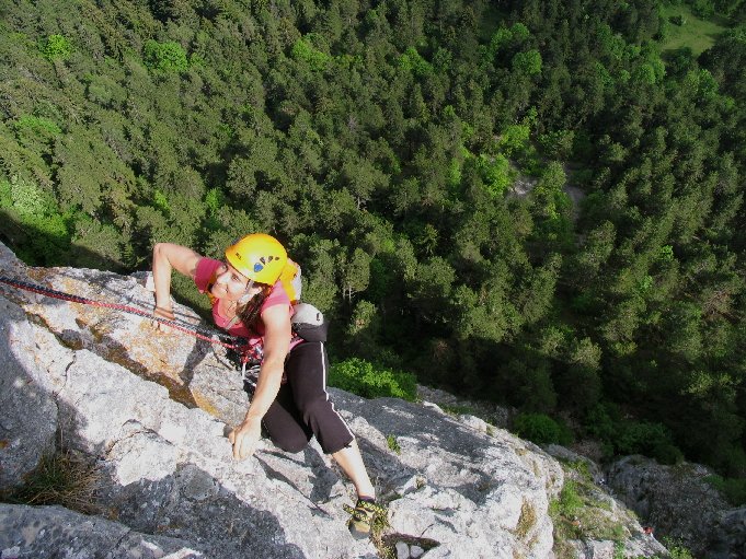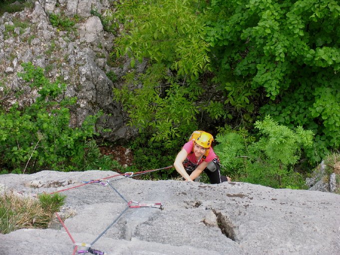 Für die erste SL ggf. kleine und mittlere Stopper, da sonst weitere Abstände. De Rest der Tour wurde saniert und mit zusätzlichen Haken versehen. Vom ersten BH in der 3. SL sollte man sich nicht abschrecken lassen.