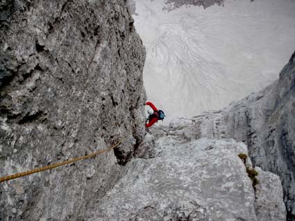 Siehe Topo - Die Route beginnt im Schneeloch links der Leuchs-Route.