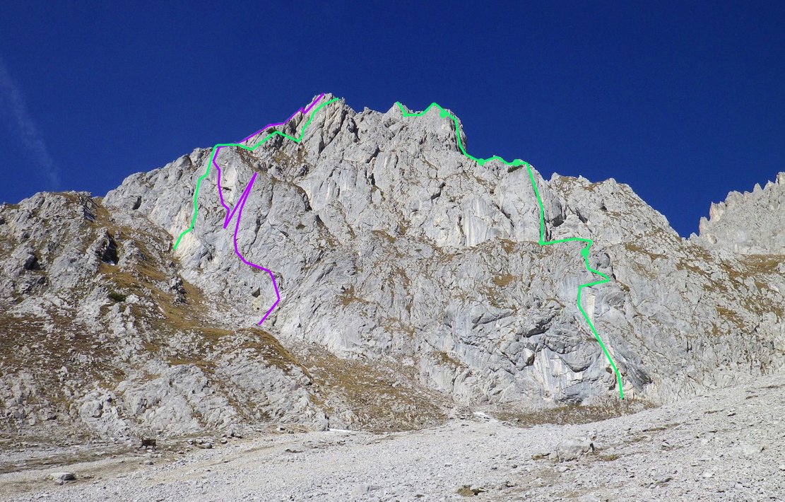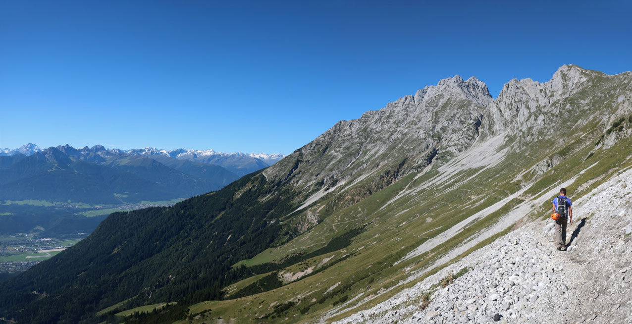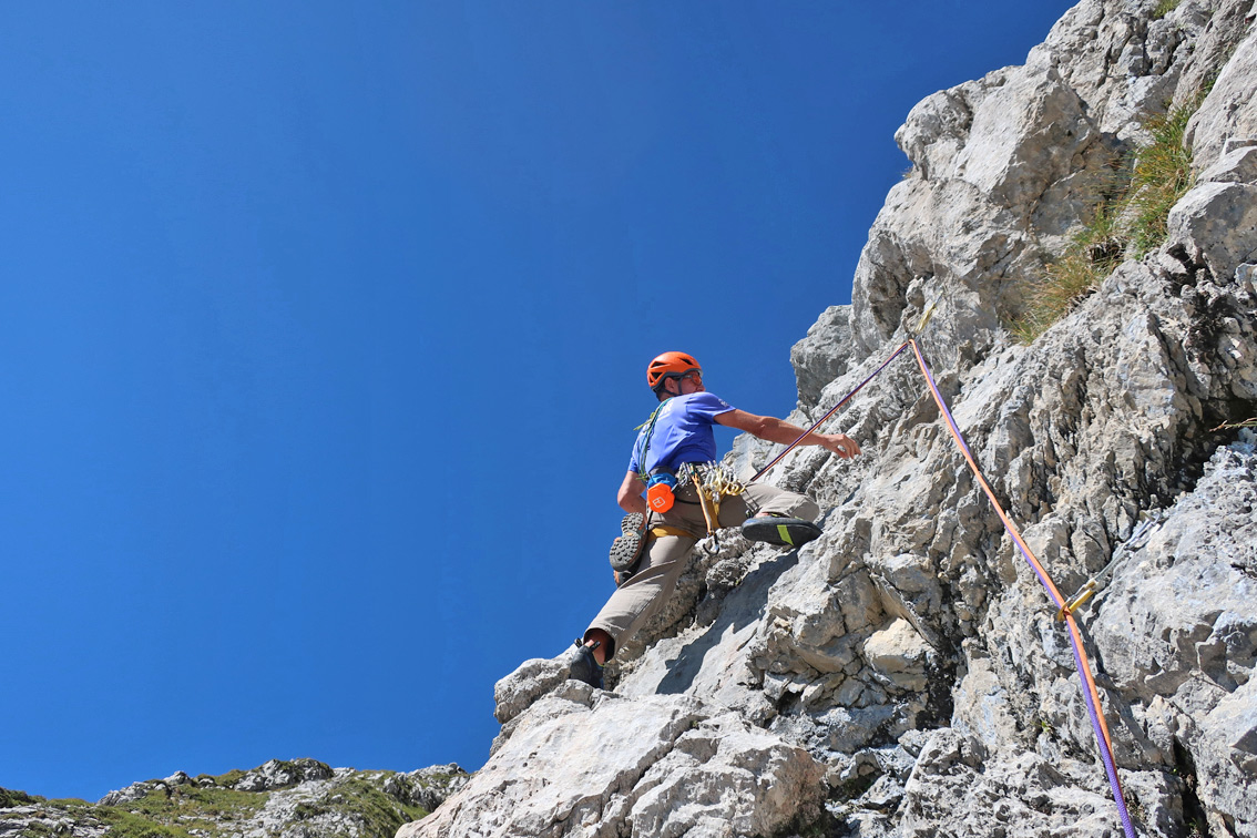 Am besten steigt man auf dem Klettersteig nach links zum Frau Hitt Sattel ab und geht auf dem Schmidhubersteig zurück zur Seegrube.