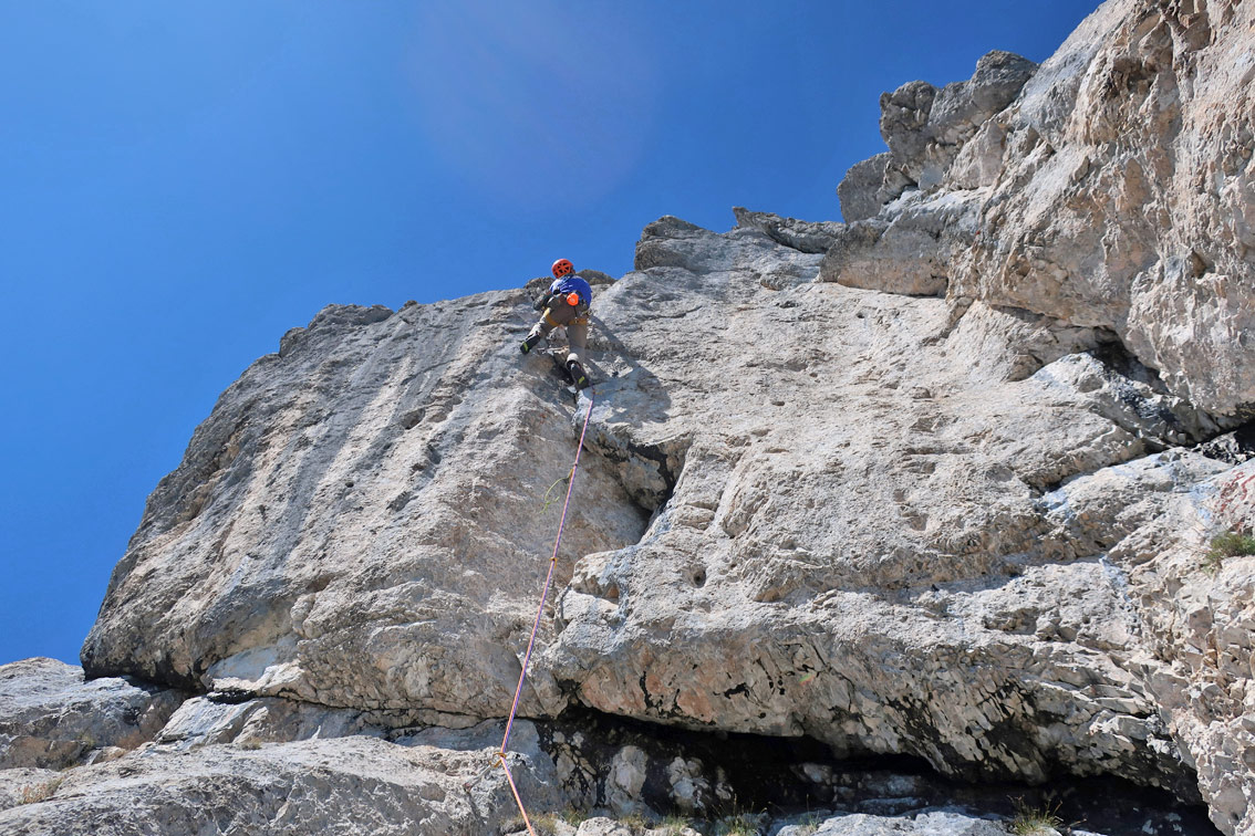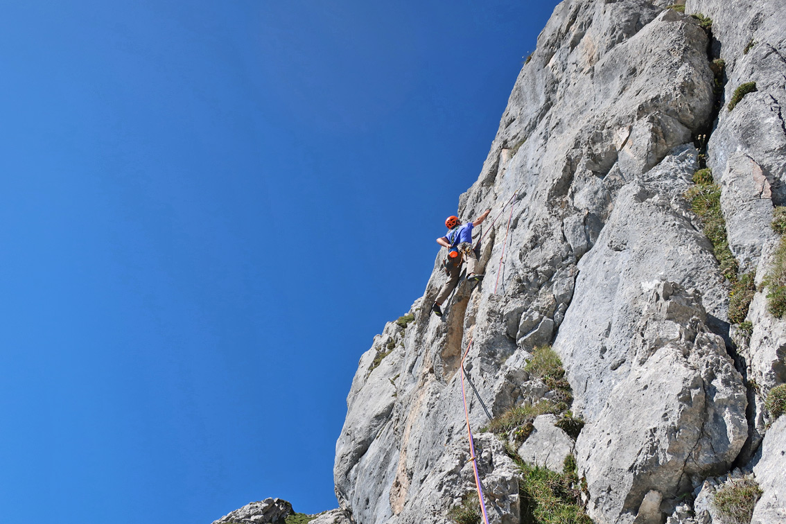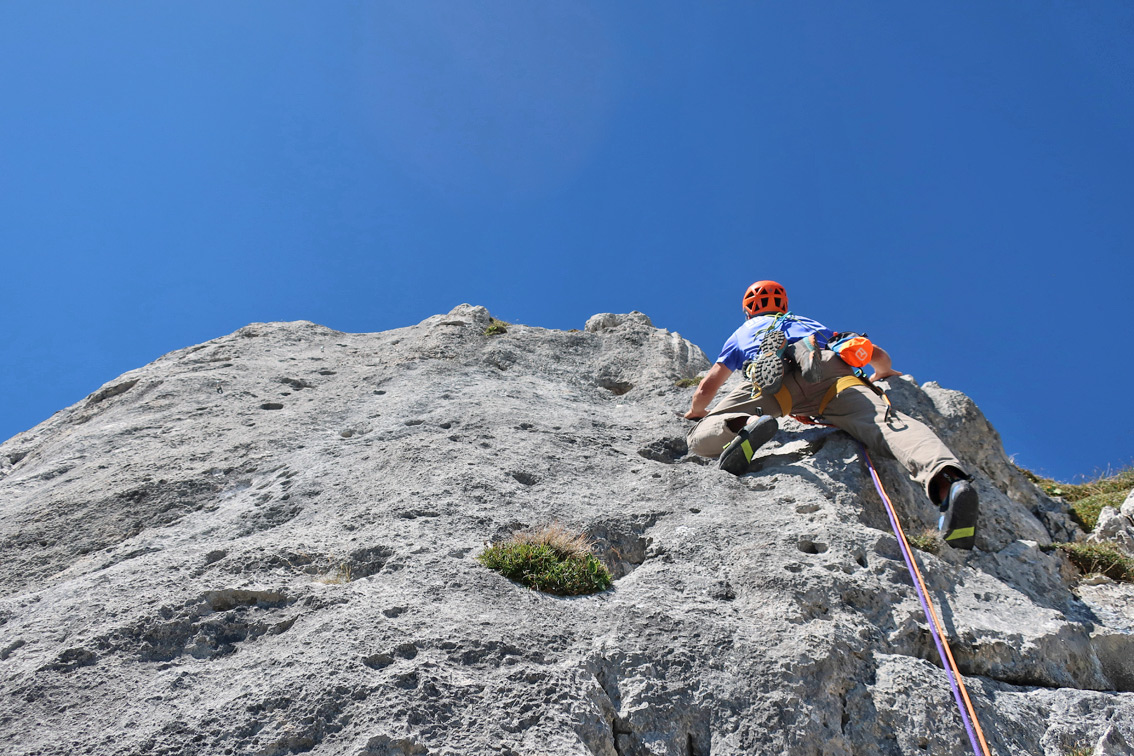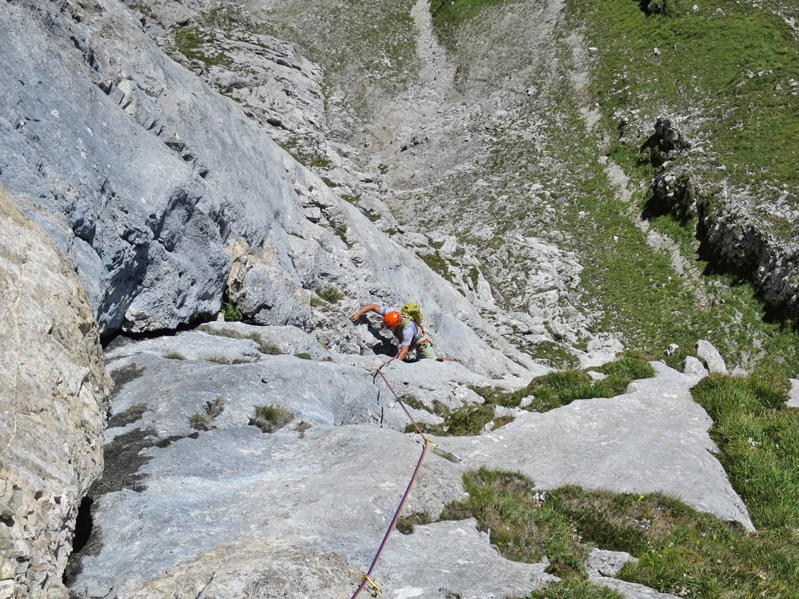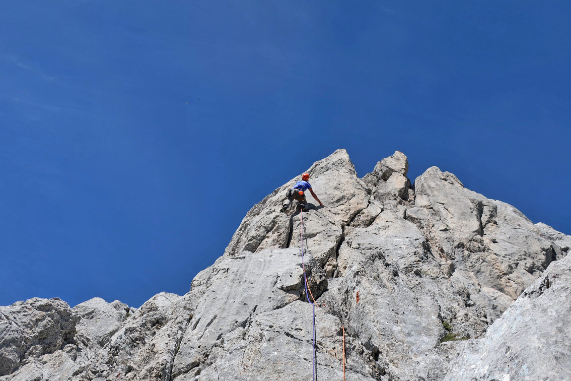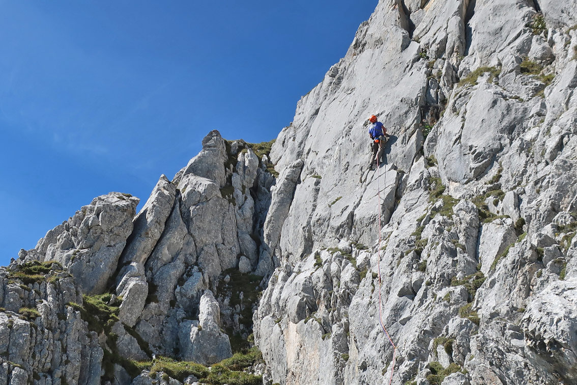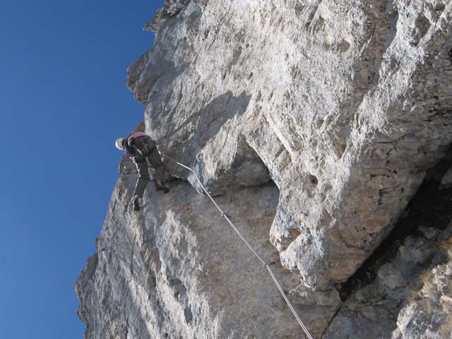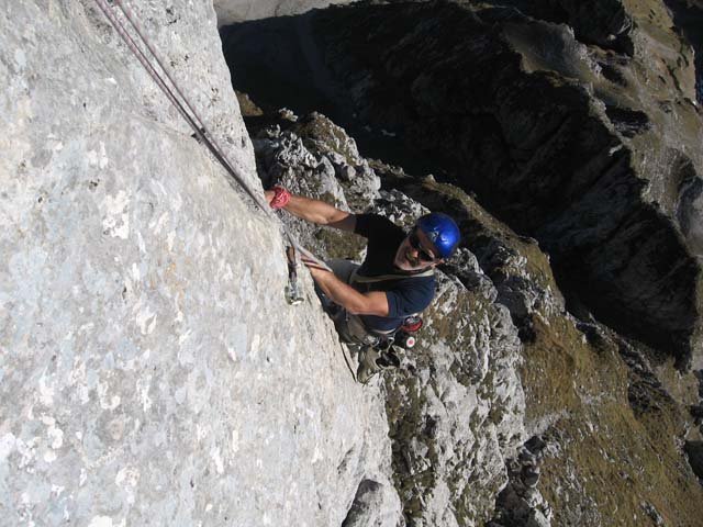 Die splittrige Schlüsselseillänge ist auch technisch nicht ganz so einfach - 6+ sollte man schon gut draufhaben.