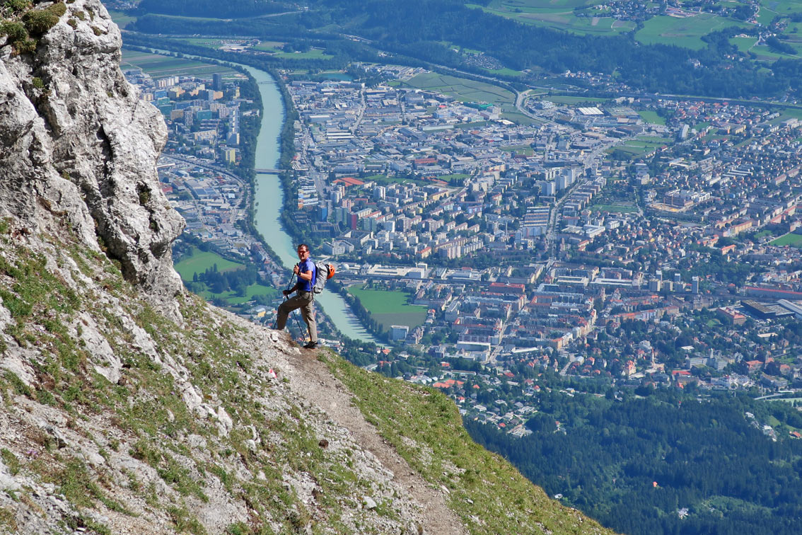 Kaum zu glauben, dass man an den gestuften Südabbrüchen der Westlichen Sattelspitze eine 10 Seillängenroute anlegen kann. Dem Erstbegeher Werner Gürtler ist dieses Kunststück gelungen, er hat eine abwechslungsreiche Platten-, Verschneidungs-, Riss-, Überhang- und Wandkletterei an kompaktem, löchrigem meist festem Wettersteinkalk geschaffen. Gut abgesichertes Klettern direkt oberhalb der Alpencity Innsbruck, wer etwas Athletik für die schwere Verschneidungslänge besitzt (auch bei Hakenbenützung ist diese Seillänge nicht ganz einfach !) sollte sich diese Route auf jeden Fall einmal anschauen.