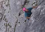 Die Tour wurde clean (d.h. nur mit Klemmkeilsicherung erstbegangen). Es stecken in der gesamten Tour nur 2 Haken!