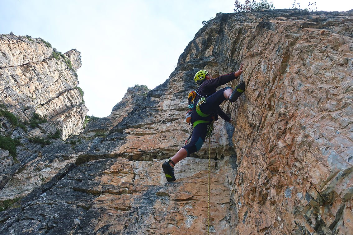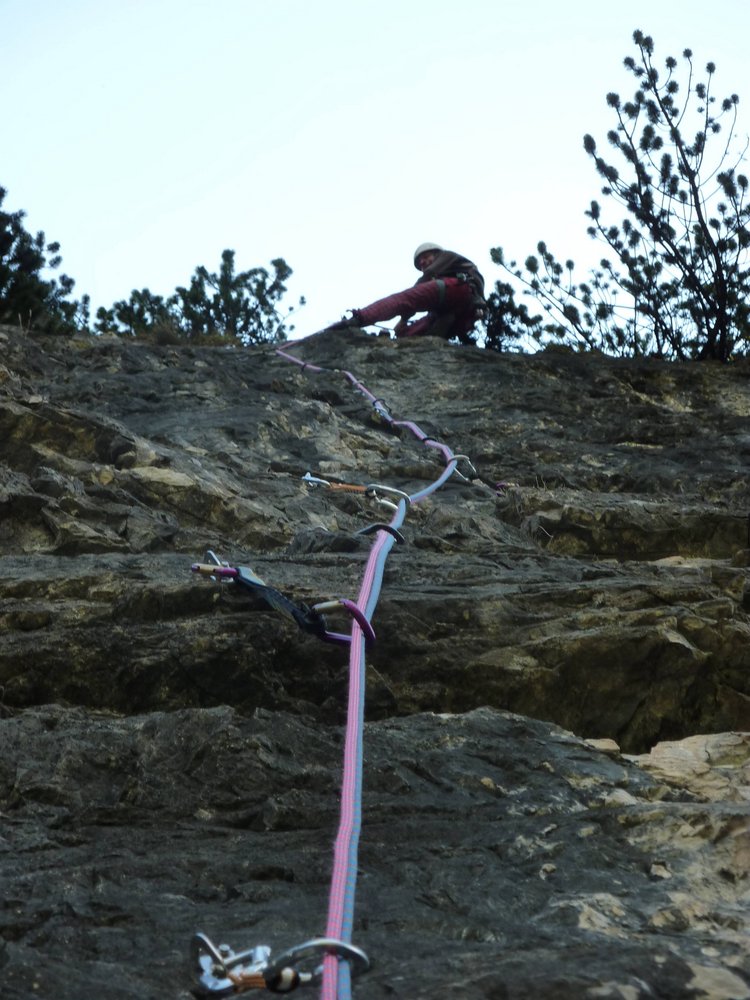 60 m Doppel- oder Einfachseil, 16 Expressschlingen und Helm.