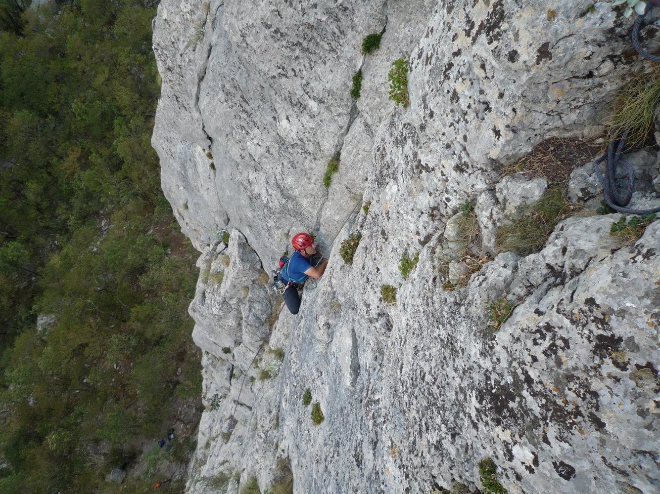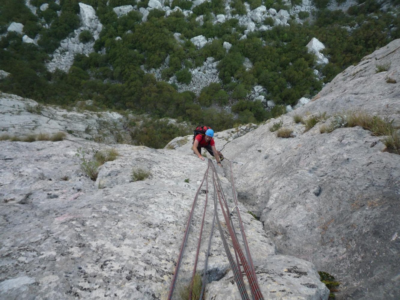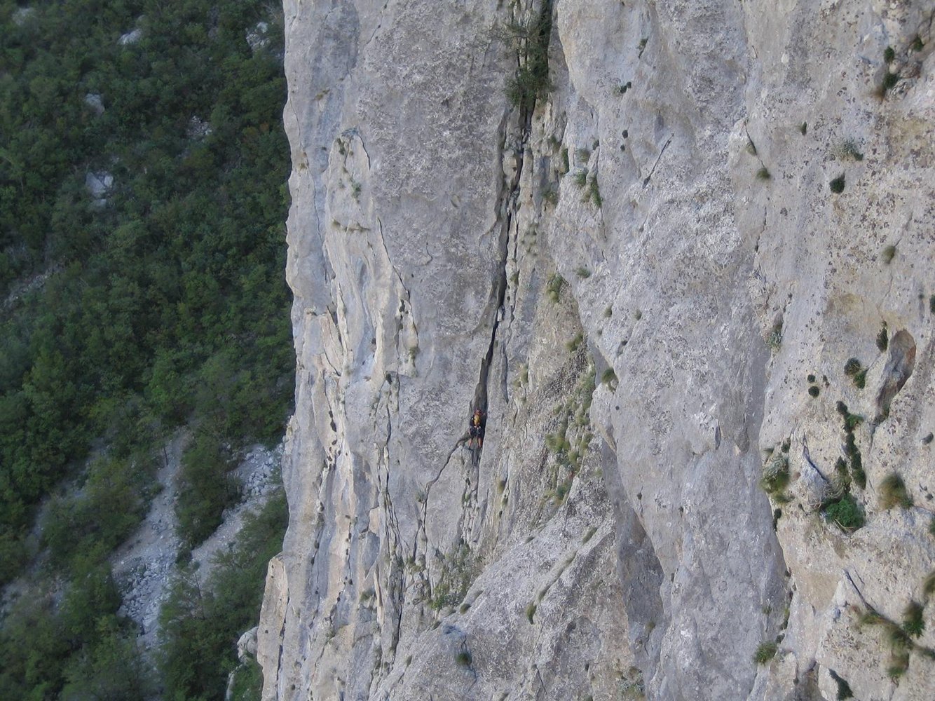 Großartige, sehr beliebte und auch bereits etwas abgekletterte Linie die zur Anića kuk – Trilogie (Velebitaški – Klin – Mosoraški) zählt. Die Route bietet sehr abwechslungsreiche Klettertei an Rissen und Platten im zentralen Teil der Nordwand. Sicher eine der beliebeste Mehrseillängen Routen im Velebit / Paklenica.
