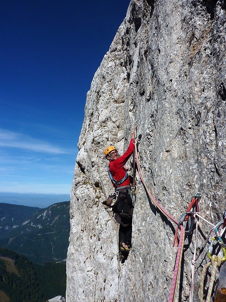 Mit der Karantanien 2000 die längste der schwereren alpinen Sportklettereien am Koschutnikturm. Wenn einem die leichteren Zwischenlängen nichts ausmachen, findet einige sehr schöne und abwechslungsreiche Klettermeter vor. Insgesamt einen Besuch wert, wobei sie an die Karantanien 2000 nicht ganz hinkommt. Die Tour ist ziemlich neu, deshalb sind die Schwierigkeitsbewertungen noch nicht ganz bestätigt.