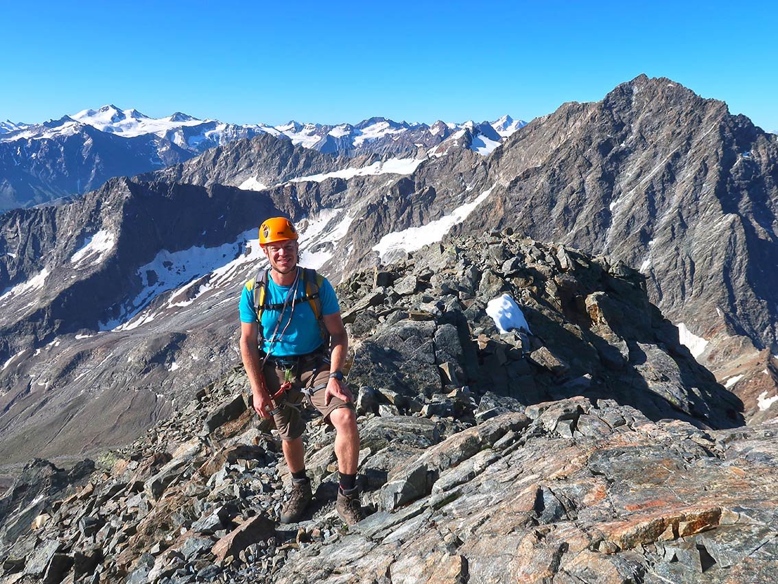 Die Verpeilspitze thront mit 3423 m hoch über der Kaunergrathütte. Der gletscherfreie Anstieg auf die Verpeilspitze erfordert Kletterei im oberen zweiten Schwierigkeitsgrad durch stellenweise brüchiges Gestein. Dafür wird man am Gipfel mit tollen Ausblicken auf die Watzespitze und die anderen Gipfel des Kaunergrats belohnt. An klaren Tagen reicht der Blick von Dolomiten im Süden bis zu der Bernina im Westen.