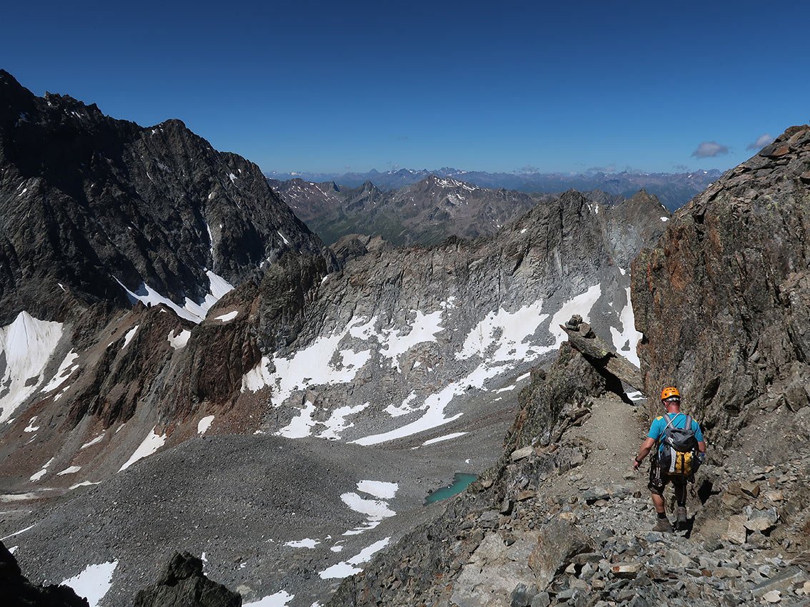 Wie Aufstieg. Eventuell über an steileren Stufen abseilen.