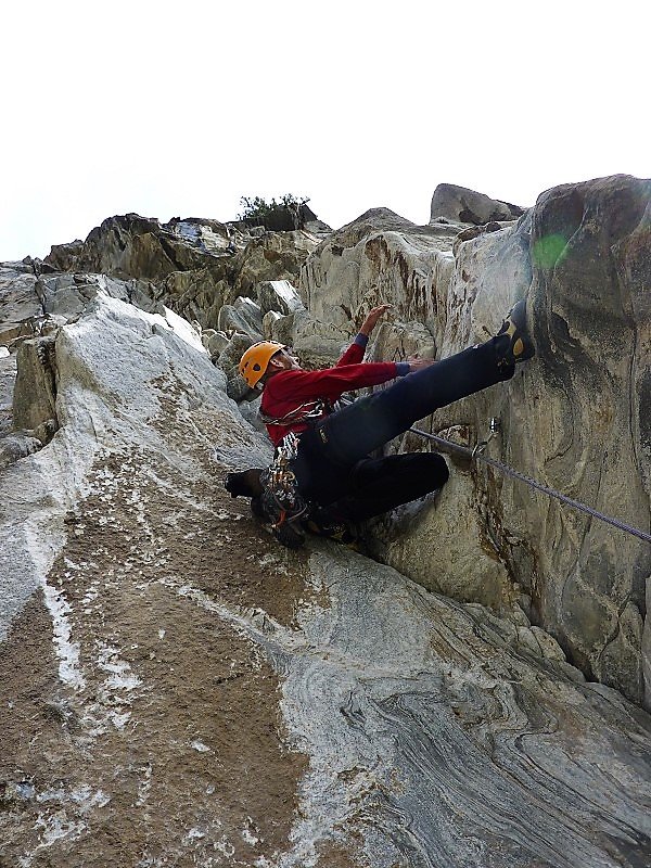 Supertolle, ausgesetzte und abwechslungsreiche Sportkletterei, die sich geschickt durch die Überhänge schlängelt. Die Route ist wegen der Überhänge bedingt regensicher und bleibt relativ lange trocken.