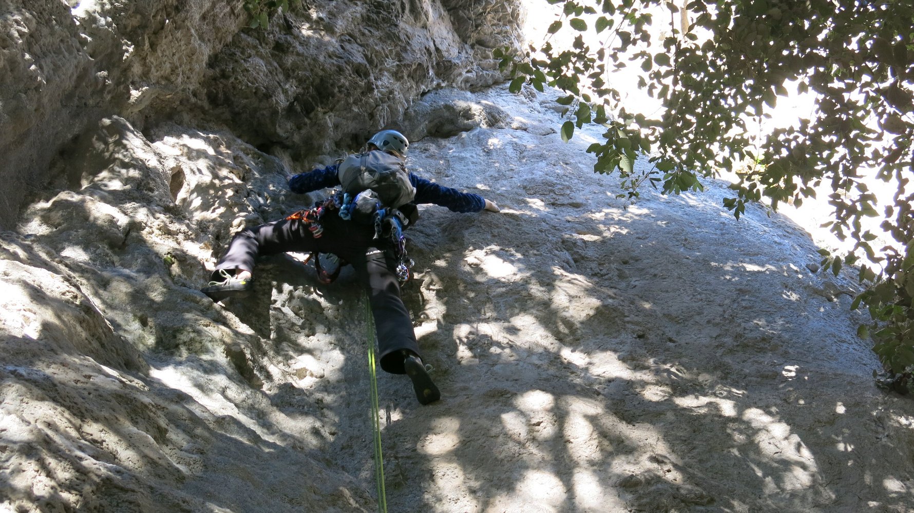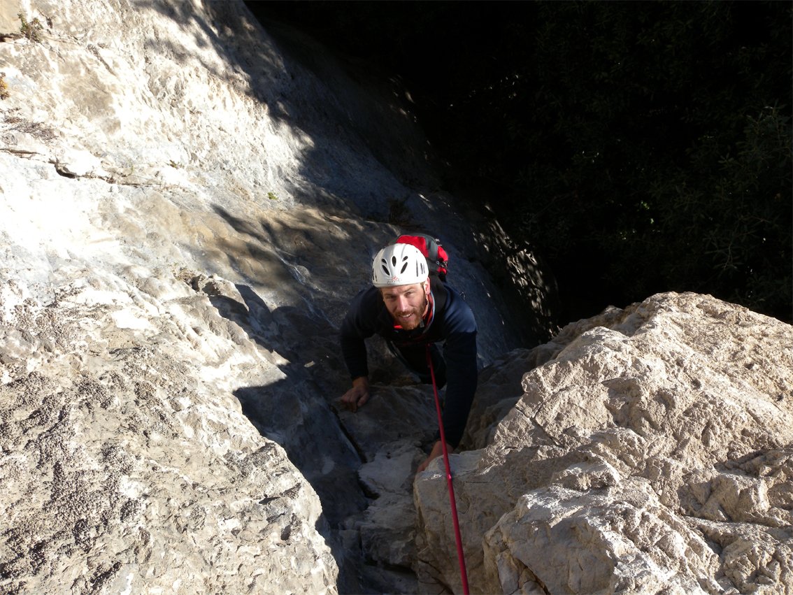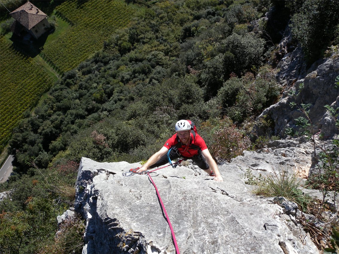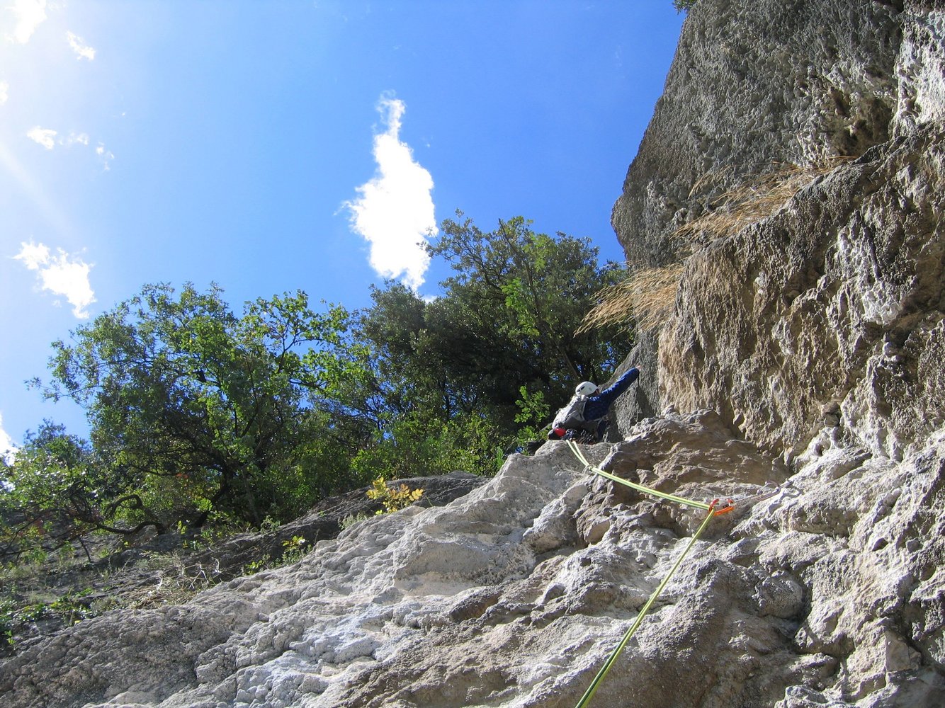 Sehr schöne, schon etwas abgekletterte Einsteigertour links der Einsiedelei Ermo di San Paolo. Die Tour ist primär mit Sanduhrschlingen gesichert, teilweise in recht engem Abstand. Die Erstbegeher haben eine schöne Linie durch die mit viel Büschen überzogene Wand gelegt.