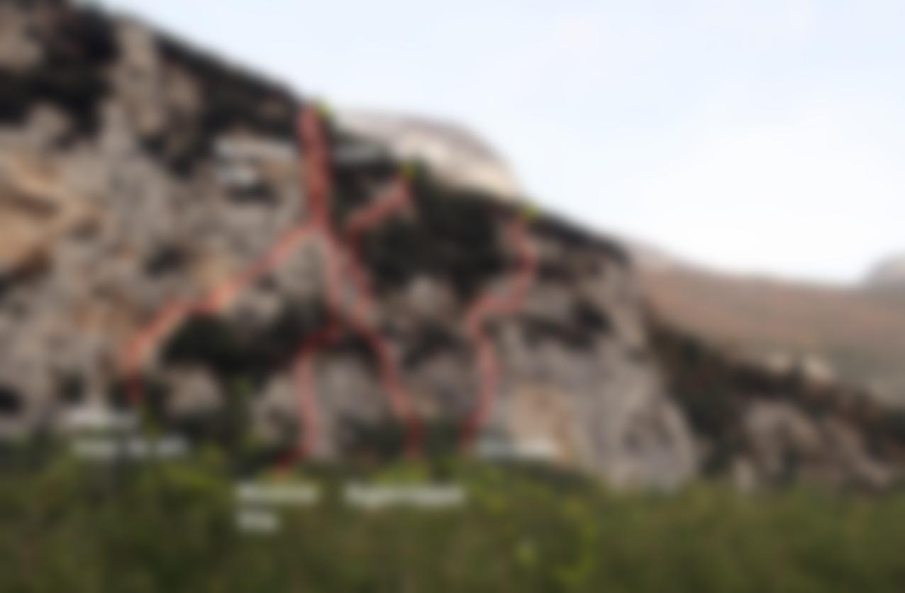 Achtung: In der 3ten und 4.ten Seillänge nicht nach links in die neue Route "Nuova Via" - siehe Übersichtbild (viele Kletterei versteigen sich in diesem Bereich und sind dann oben in der falschen, schwereren Route)!