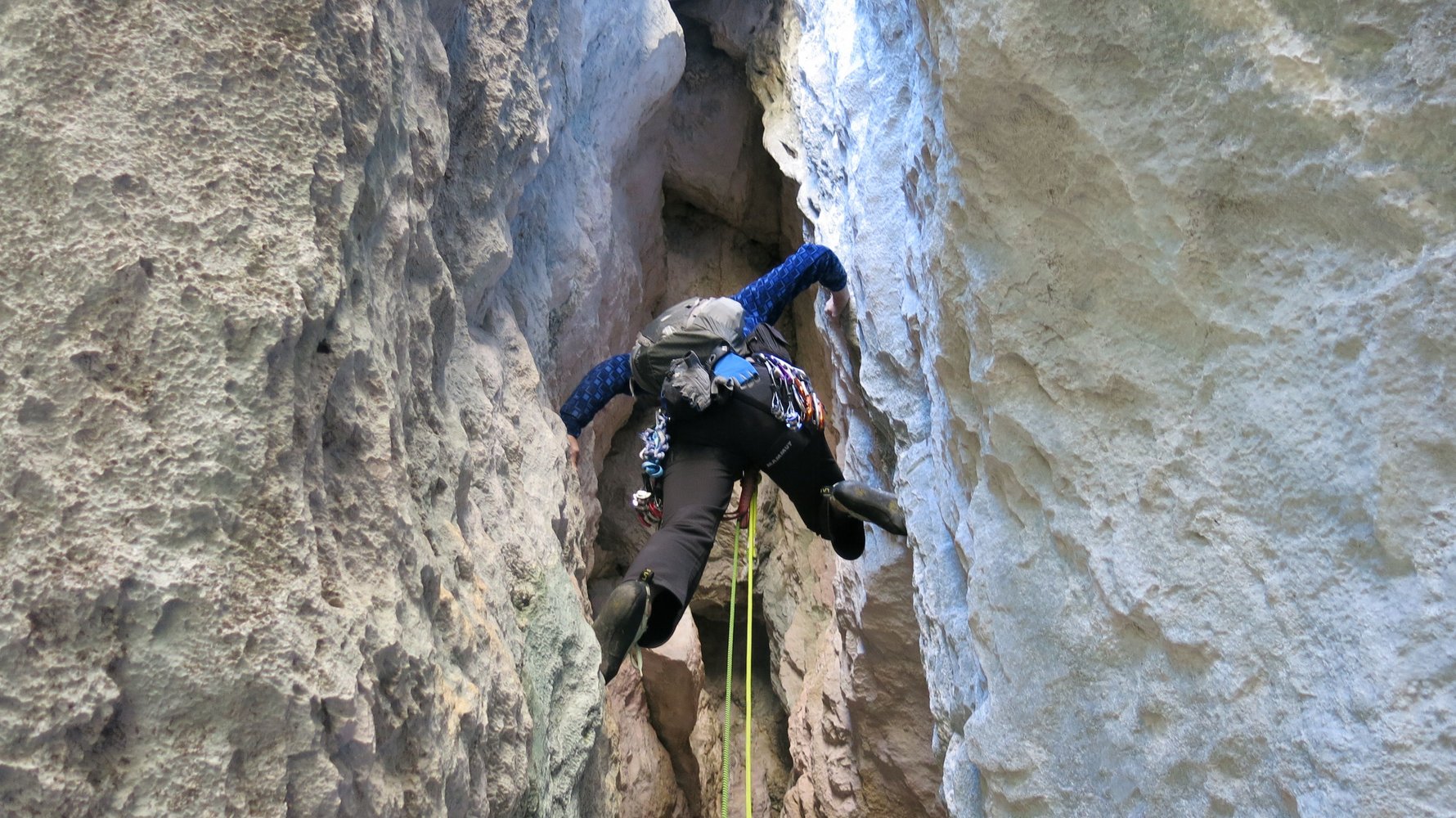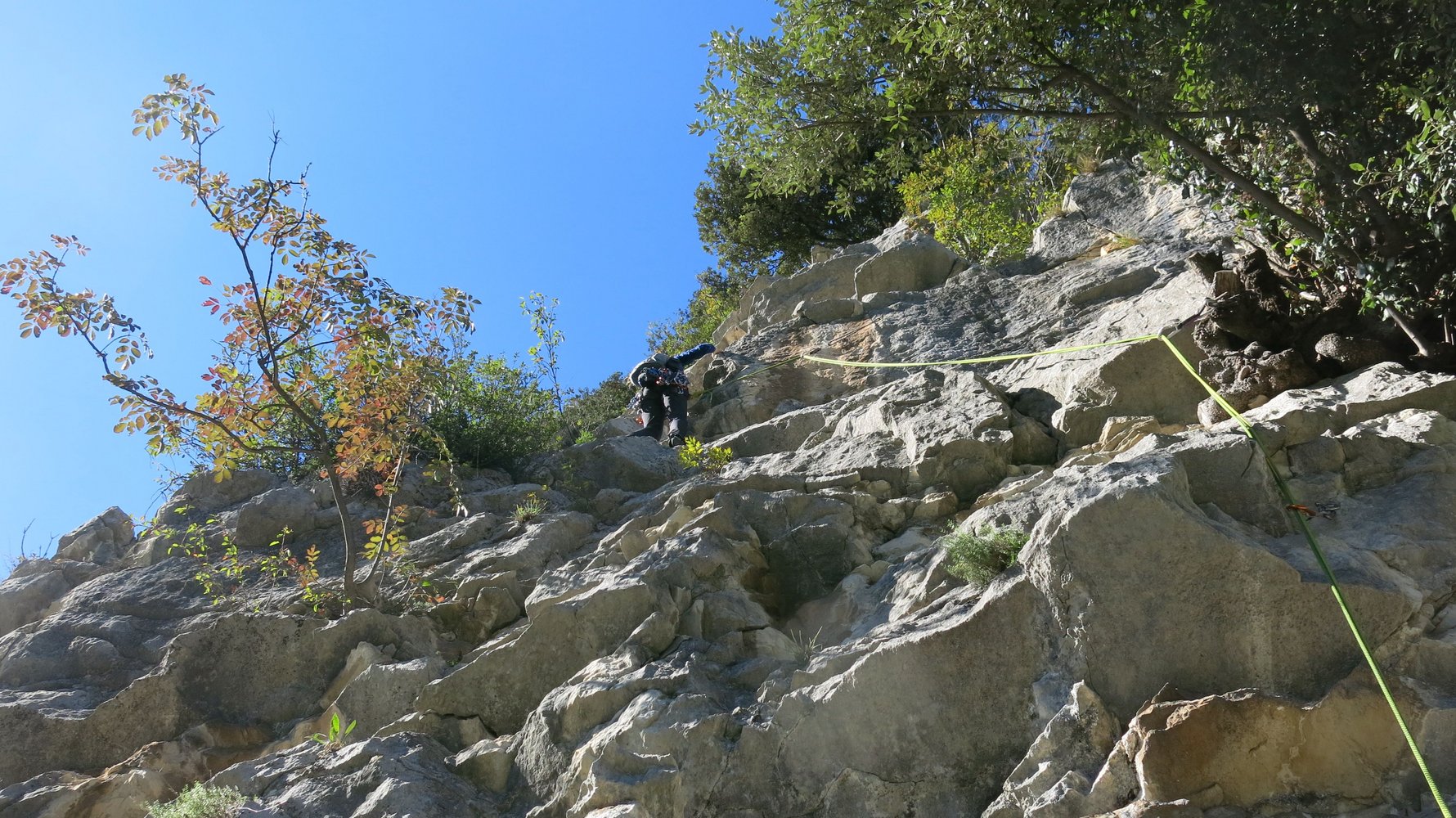 55 m Seil, 11 Expressschlingen, eine Bandschlinge für Baumstände und einen Helm.