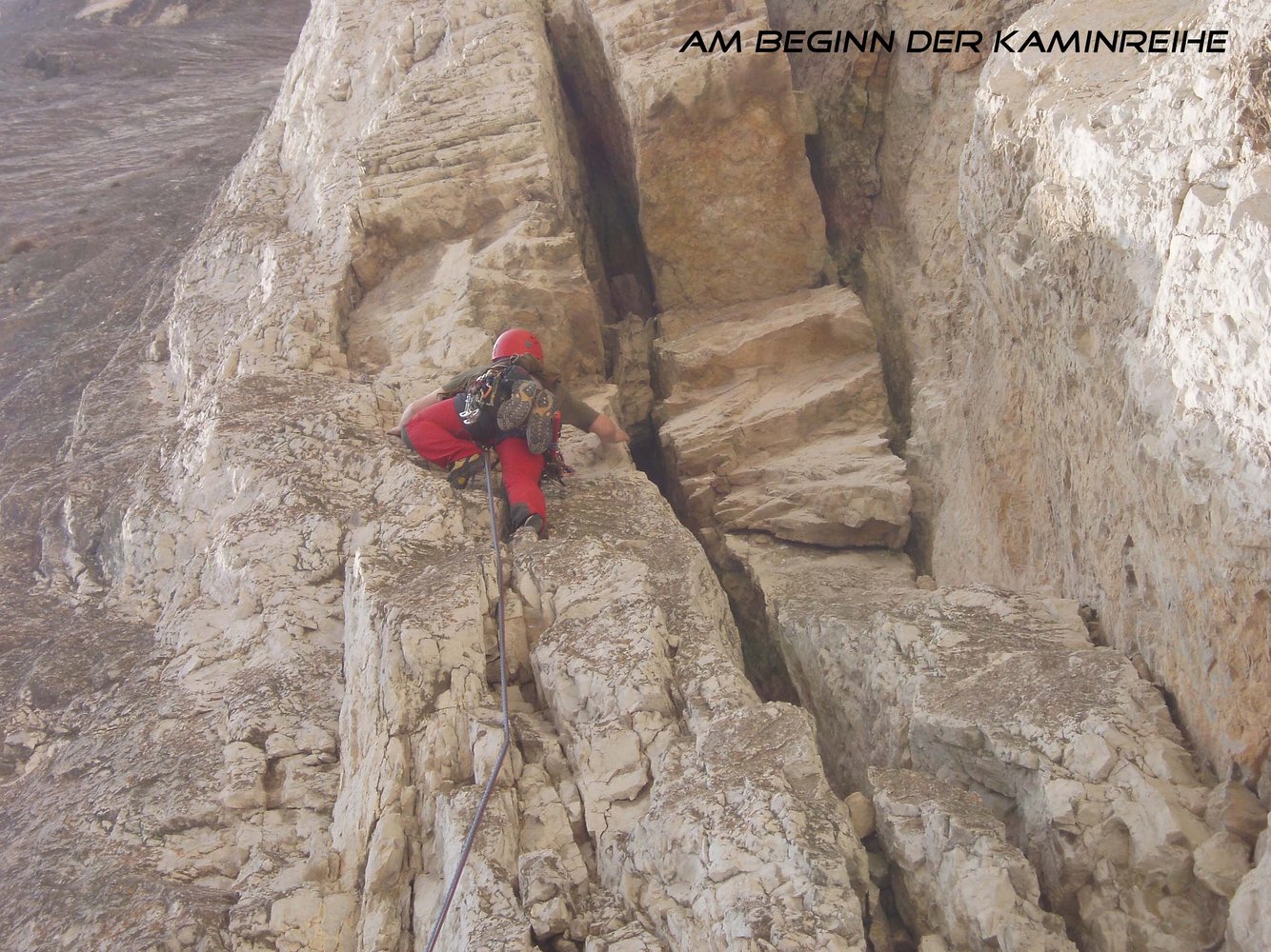 Ist ist nicht ratsam einzusteigen wenn sich bereits Kletterer in der Wand befinden. Die Einstiegsverschneidung ist unangenehm, sehr steinschlaggefährdet und sollte schnell hinter sich gebracht werden.