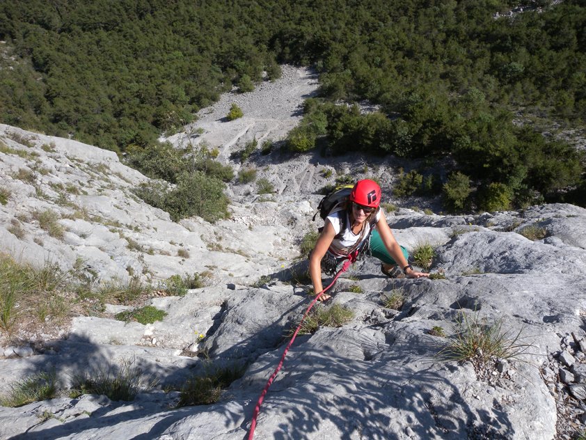 Die Via del 46 Parallelo ist eine der leichtesten und beliebtesten Kletterrouten an den Sonnenplatten (Plache Zebrate). Der Fels ist immer griffig und angenehm zu klettern, nur in der 3ten Seillänge wird es kurz etwas steiler. Kann man auch gut mit anderen Touren kombinieren. Die Parete Zebrata Platten gehören zu den bekanntesten Kletterzielen am Gardasee, man ist also selten allein in der großen Plattenwand.
